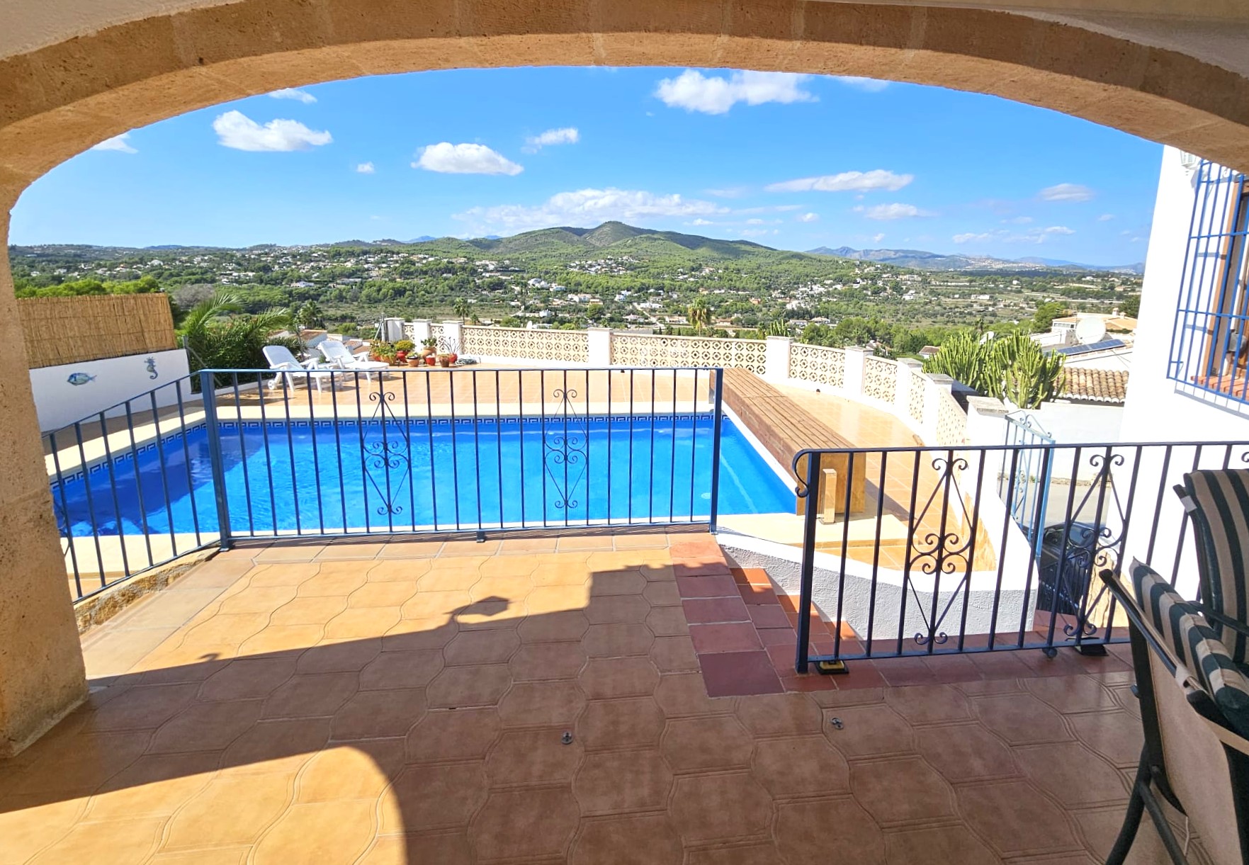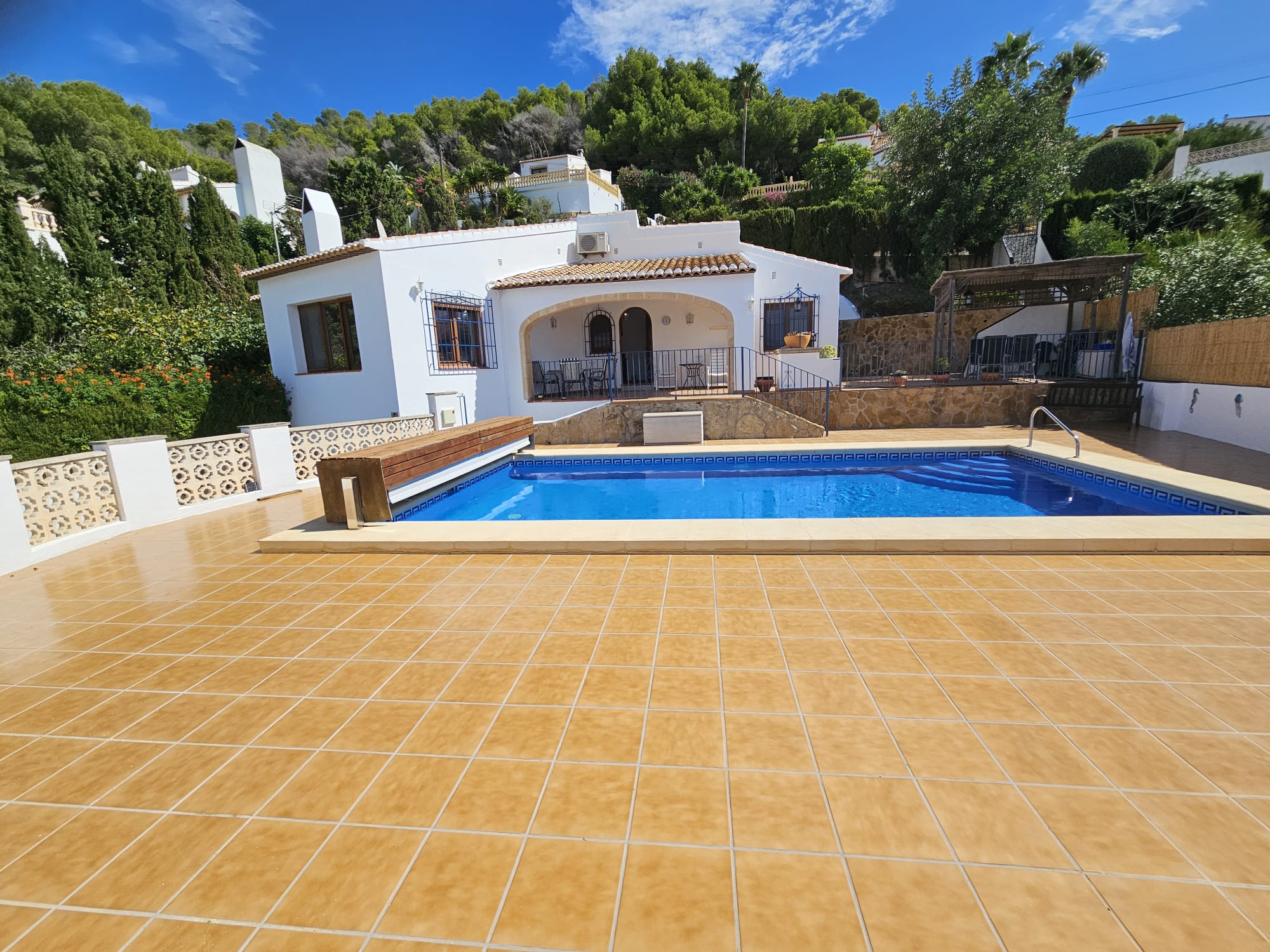 Super family 3 bedroom villa for sale, located in the highly desirable residential area of Rafalet in Javea, on the Costa Blanca. South-west facing, the property offers panoramic views stretching from the traditional Spanish town of Benitachell near Moraira, across to the Segaria mountains behind Denia, with some of the most spectacular sunsets in the region. Within easy reach you will find excellent restaurants including one with a Michelin star, beautiful walking and cycling routes, and quick access to the coastal towns of both Javea and Moraira with their beaches, marinas, shops, restaurants and all amenities. The villa is also close to top international schools such as Lady Elizabeth School and Xabia International College, as well as excellent local schools. Accessed from a quiet cul de sac, the main living area is on one level and includes a welcoming open naya leading to the hall, the master bedroom with en-suite shower room, fitted wardrobes and air conditioning, a spacious living and dining room with beamed ceilings, pellet burner, air conditioning and tosca arch, plus a fully fitted separate kitchen. The hall also leads to a family shower room and two further double bedrooms, both with fitted wardrobes and air conditioning. Outside, there is a 9m by 4m heated salt-water pool with a remote-controlled safety cover, set within a private sunny terrace with steps up to the naya and a covered pergola with built-in BBQ, perfect for entertaining. The property also benefits from a larger than average garage with water and electricity connections. With its combination of privacy, comfort and breathtaking views, this villa is a perfect family home in one of the most attractive areas of the Mediterranean. Key features: South-west orientation with panoramic mountain and sunset views One-level main living accommodation Three double bedrooms all with air conditioning and fitted wardrobes Spacious living and dining room with beamed ceilings and pellet burner Heated 9m x 4m salt-water pool with remote-controlled safety cover Private sunny pool terrace with pergola BBQ area Large garage with water and electricity This villa combines comfort, privacy, and stunning views—making it an outstanding opportunity for anyone wishing to enjoy the best of life on the Costa Blanca.
