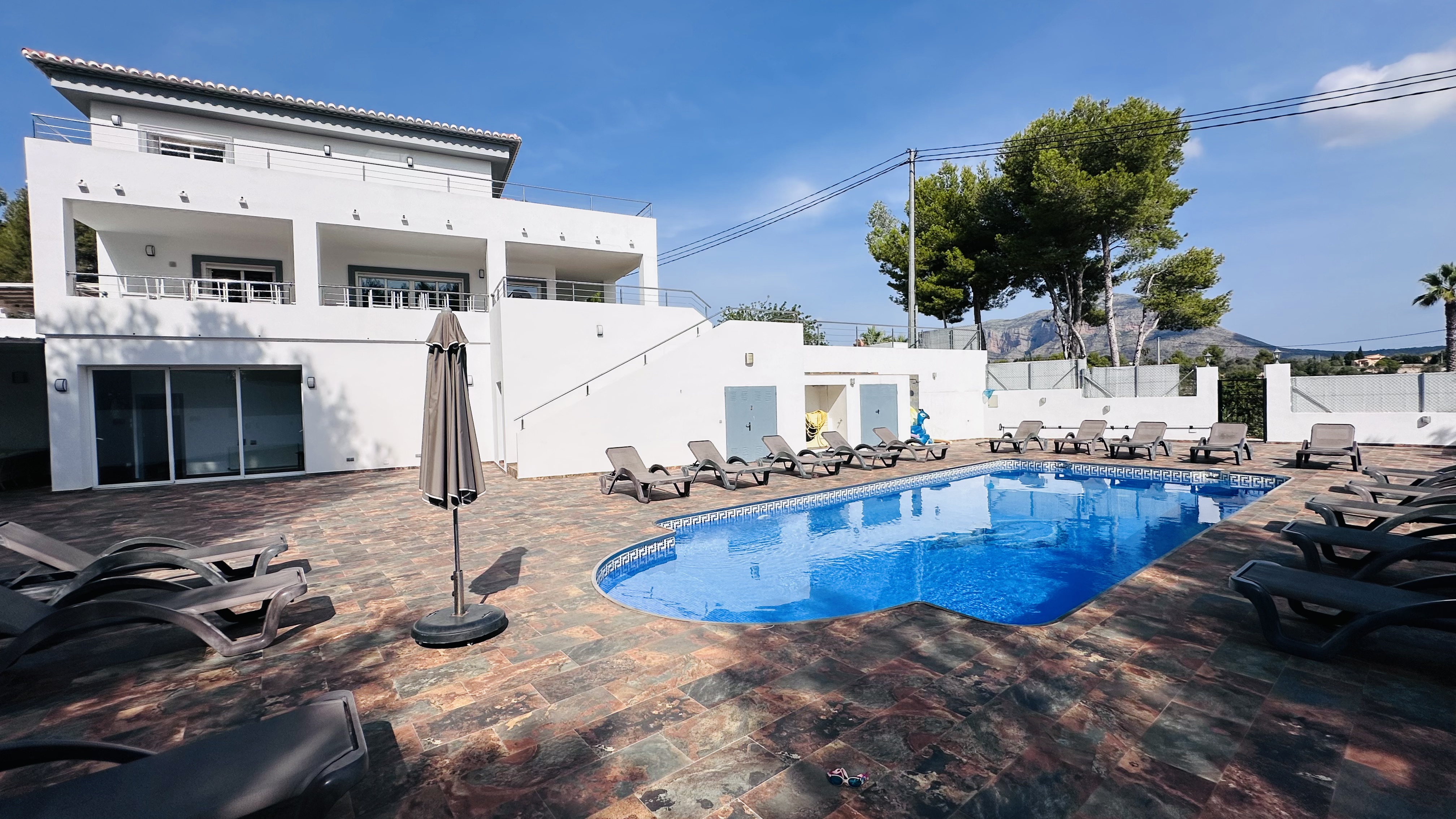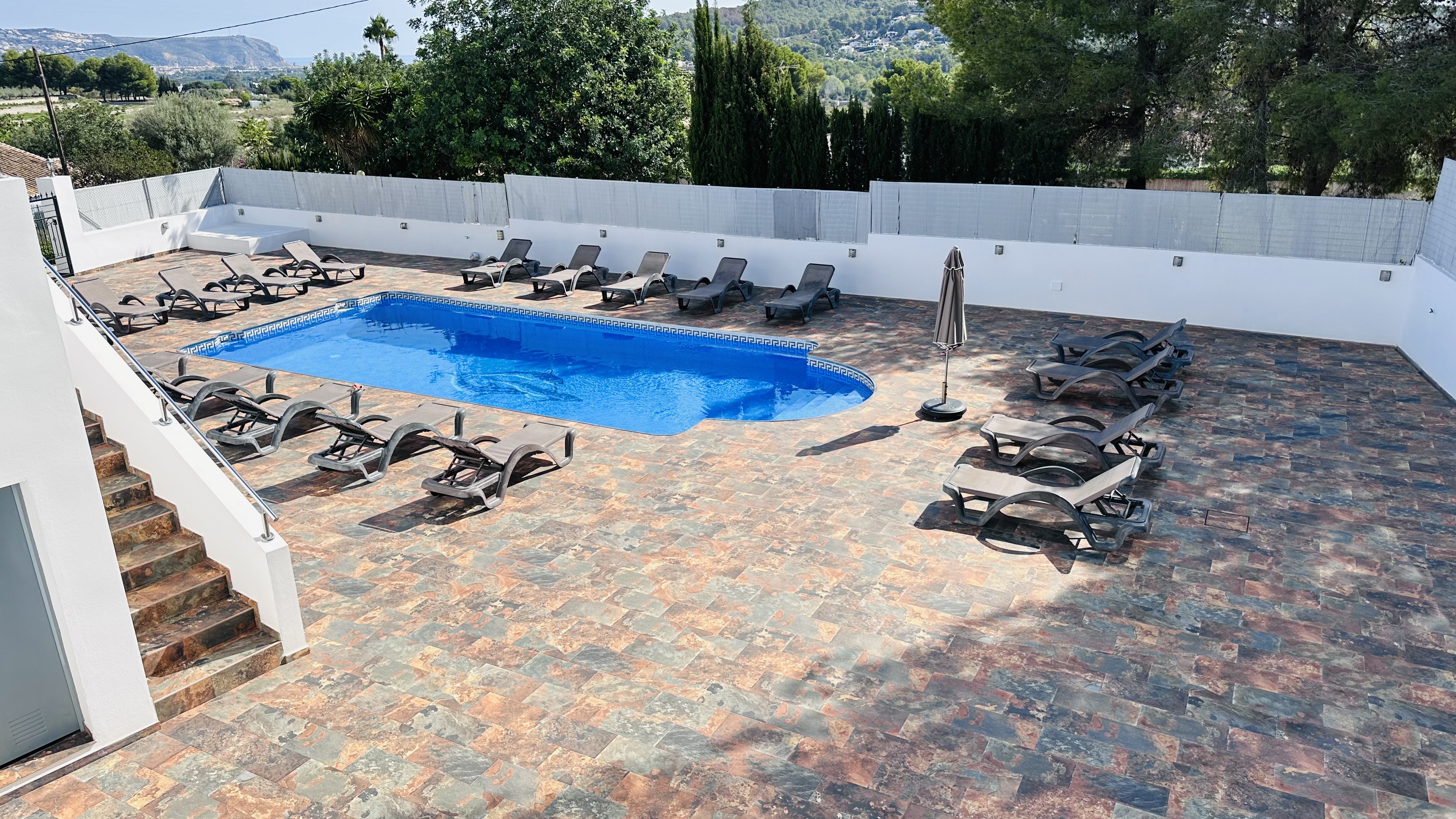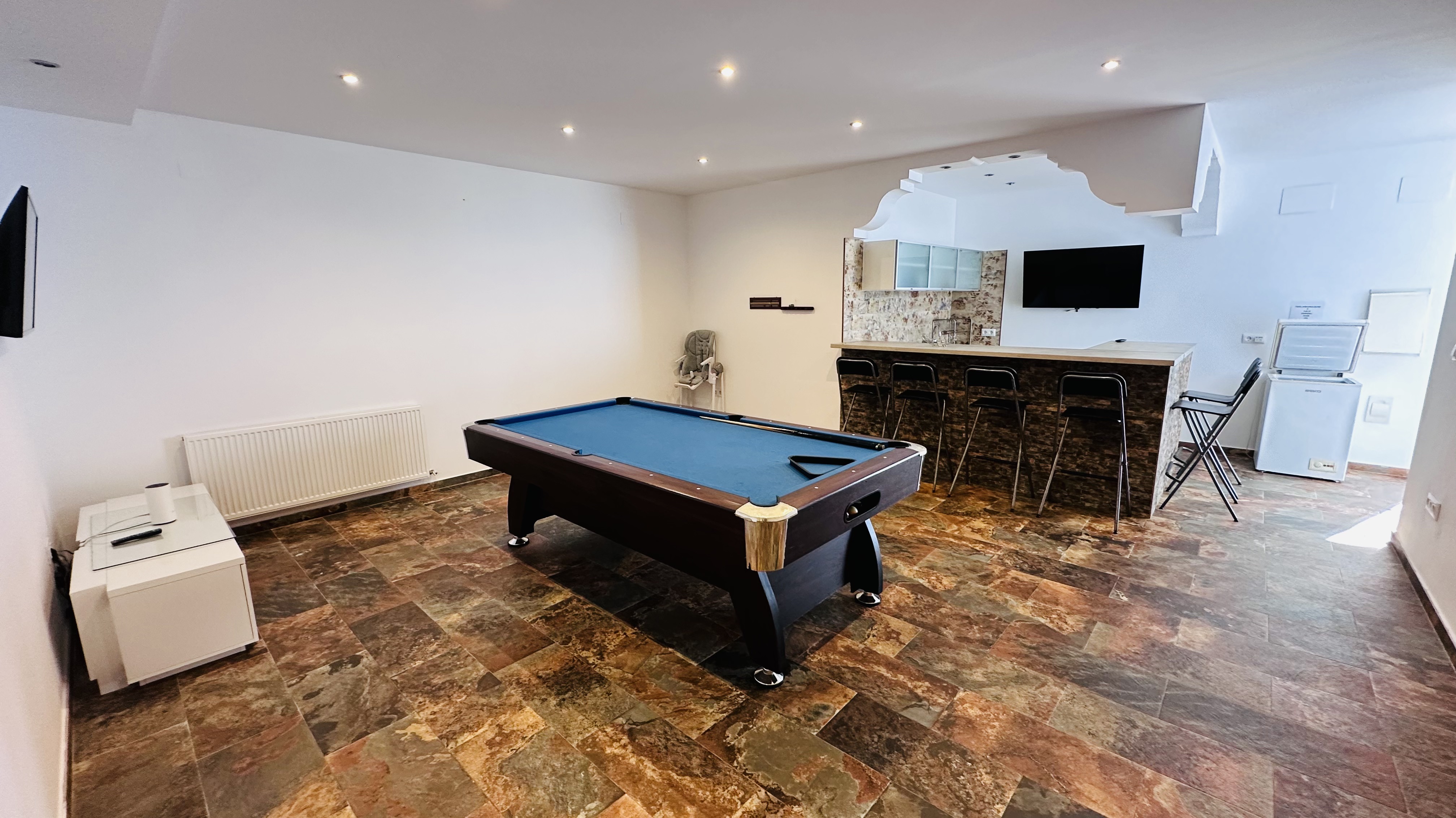 Large patio doors surround the living area allowing for amazing views of the Montgo mountain and the Mediterranean sea with direct access to the large wrap around balcony on the ground floor, the property has a total of 7 bedrooms, 3 of which have en-suites, 2 main bathrooms and 1 toilet room. There is a large games room located in the basement which is equipped with a snooker/pool table, computer gaming area and darts board. All bedrooms, lounge, dining area and games room have air conditioning.