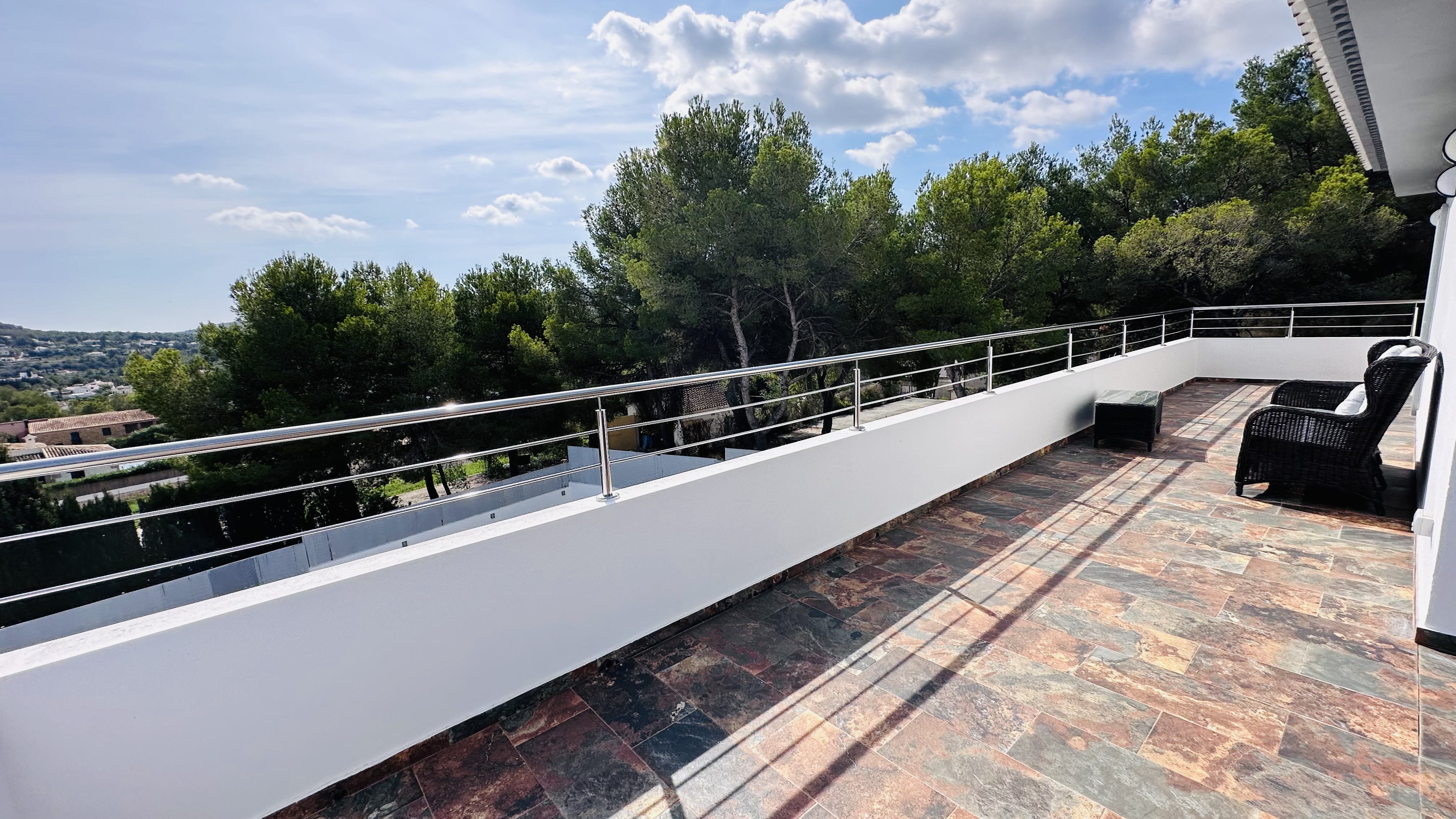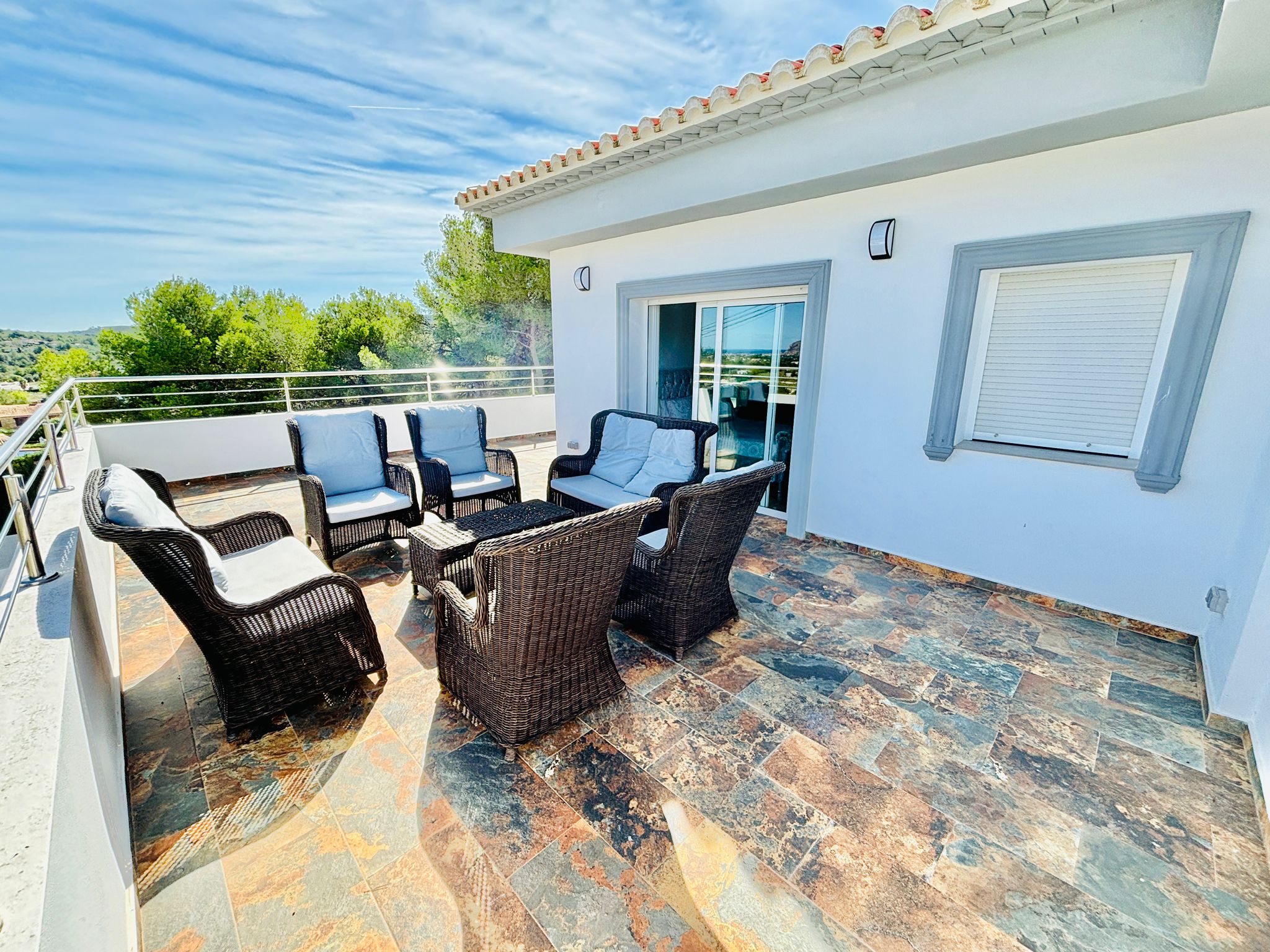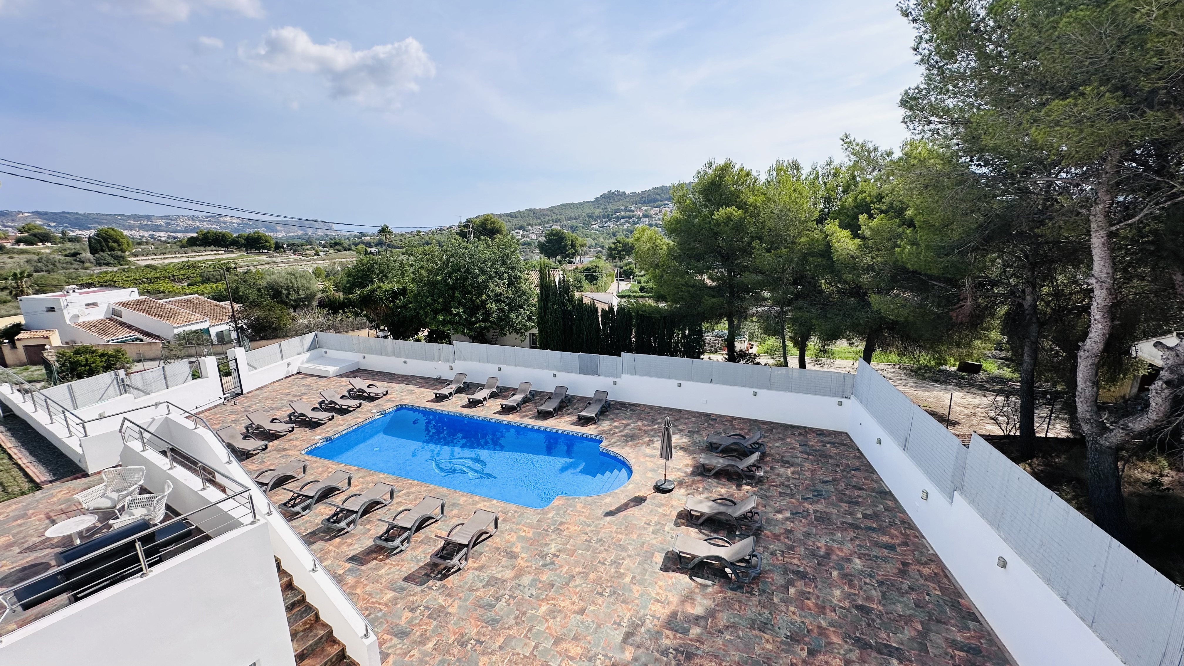 Large patio doors surround the living area allowing for amazing views of the Montgo mountain and the Mediterranean sea with direct access to the large wrap around balcony on the ground floor, the property has a total of 7 bedrooms, 3 of which have en-suites, 2 main bathrooms and 1 toilet room. There is a large games room located in the basement which is equipped with a snooker/pool table, computer gaming area and darts board. All bedrooms, lounge, dining area and games room have air conditioning.