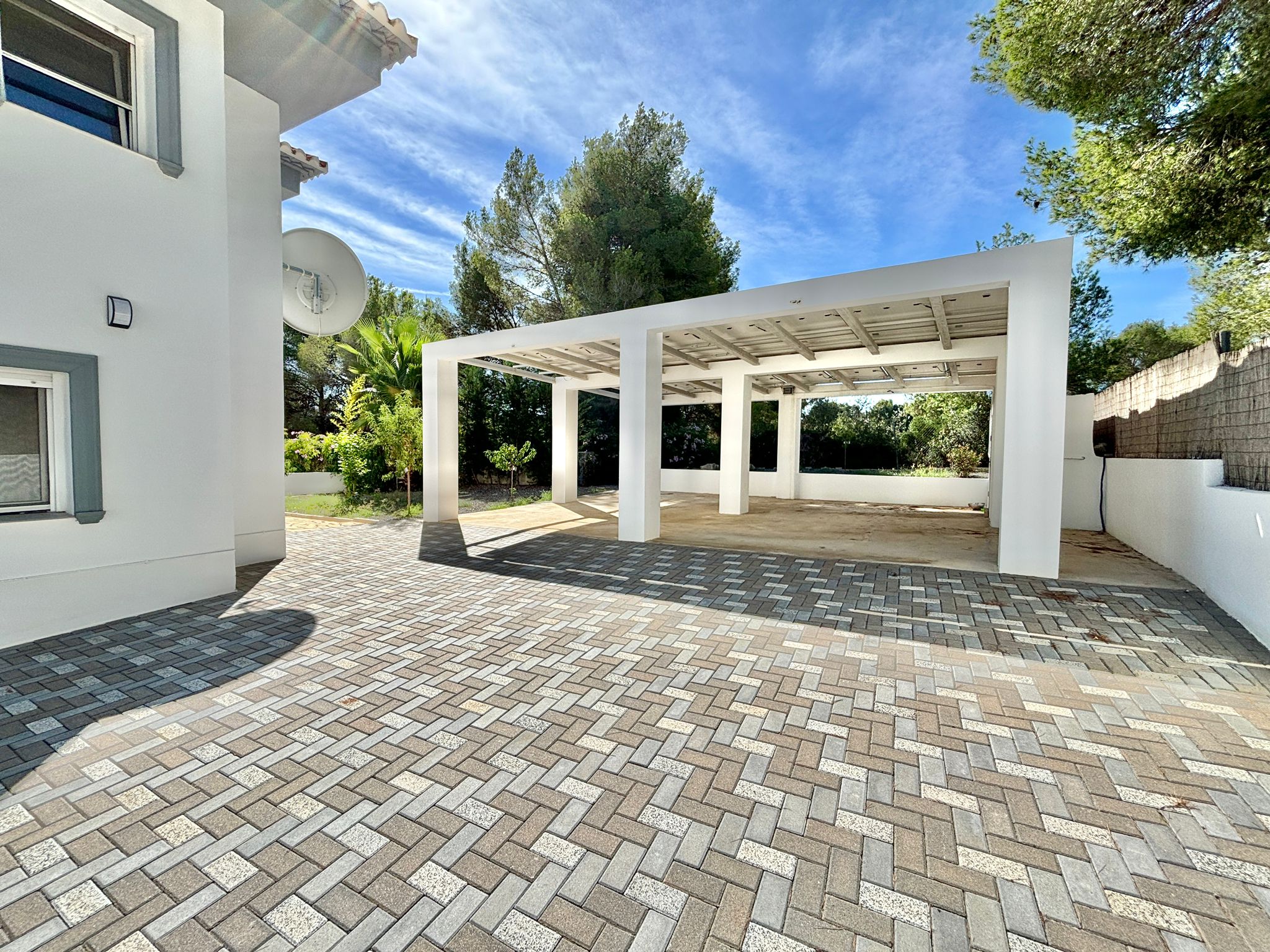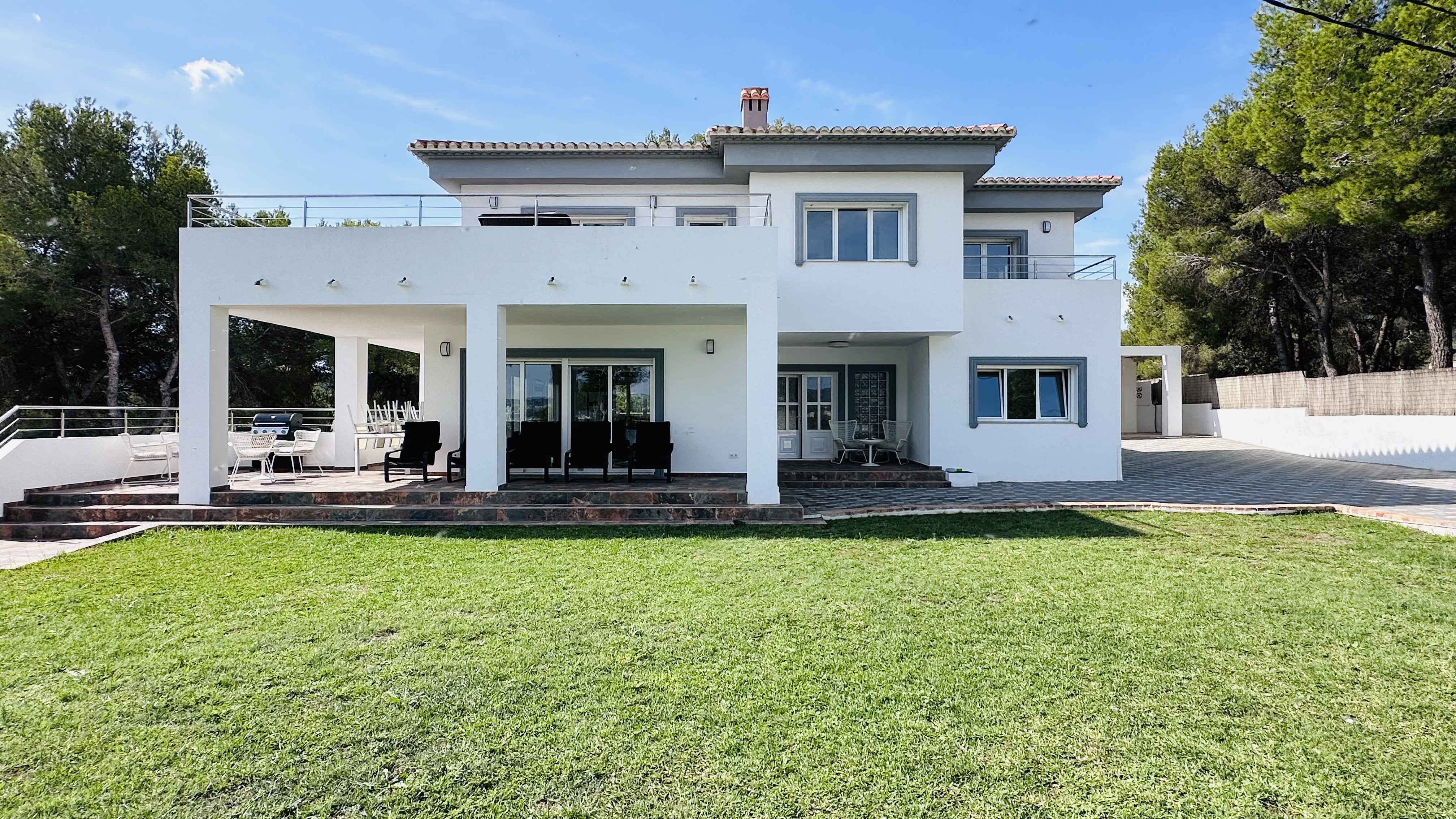 Modern luxury villa for sale in Javea, located in a quiet location with sea views, distributed over 3 levels, large secure and very private plot.