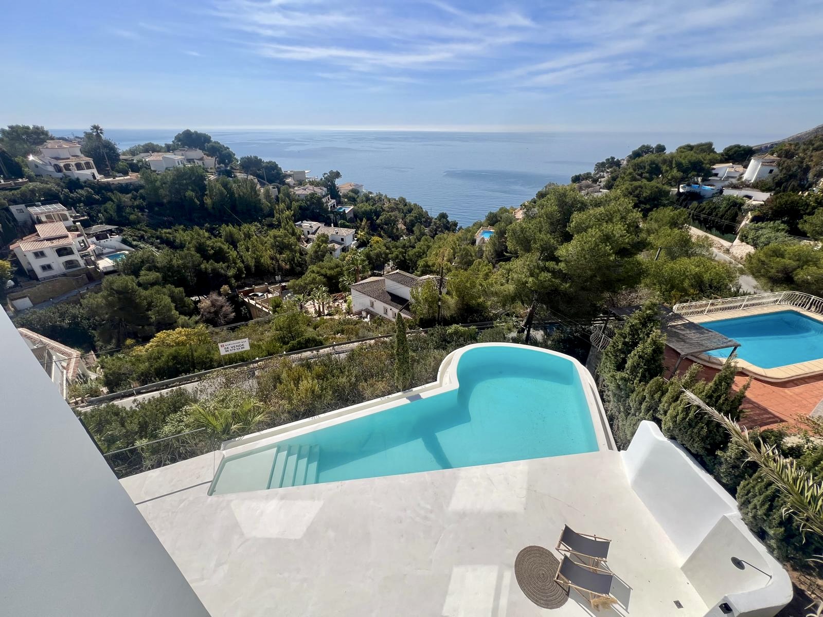 Modern Luxury villa on 2 levels, combining ultra modern design with top quality features, enjoy breathtaking sea views, there are 4 double bedrooms and 4 bathrooms, lounge and separate dining room with fireplace, stunning fully equipped kitchen, private swimming pool on a flat area, low maintenance garden, roof terrace, underfloor gas central heating, air conditioning hot and cold, private parking space. Located in a unique and tranquil location in our beautiful Javea.
