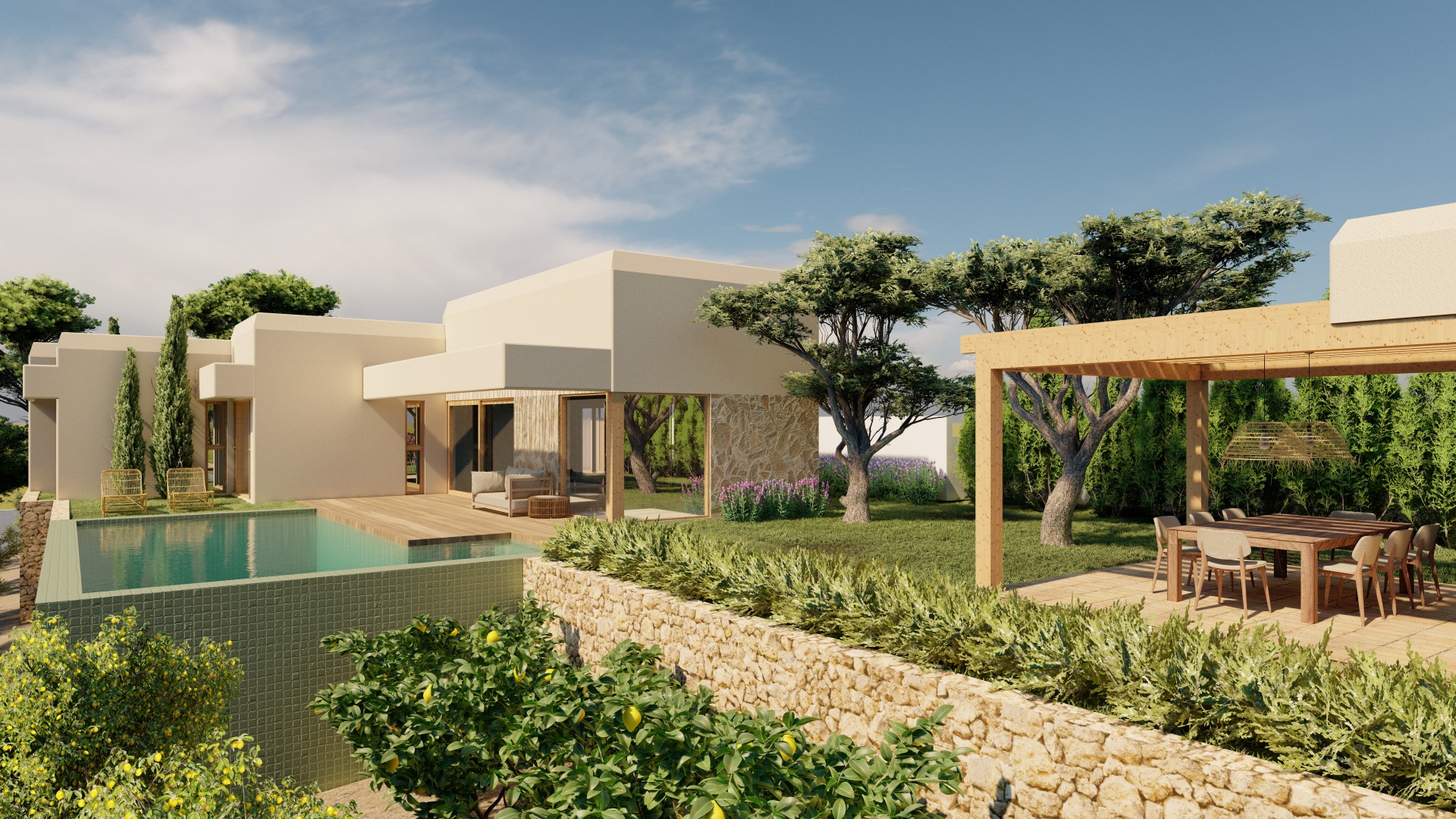 Modern Villa Project located in Jávea – Tosalet at a short drive to the Arenal beach. This contemporary, single-level villa is set on a flat plot of 1,020 m² and features a spacious, open-plan living and dining area with a fully equipped open kitchen. The villa offers 3 bedrooms with en-suite bathrooms, a guest toilet, and parking for 2 cars. Hot/cold air conditioning and shutters are included. Enjoy a lovely outdoor area with a pool measuring 3.50 × 10.00 m, including a 2.00 m shallow area (total 35.00 m²). Optional extras: – Underfloor heating – Pool cover andamp; Pool heating – Outdoor kitchen – Gardening not included