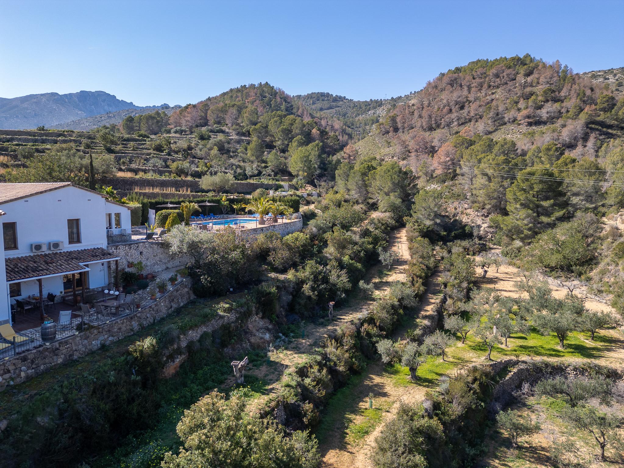 Rural yet centrally located, less than 10 minutes by car from Calpe, Benissa and the Jalón Valley, and easily accessible via paved roads. Currently partly used for holiday rentals, it is also ideal for informal care, a ‘separate but together’ holiday concept, or a large family home. The property features 10 bedrooms and 6 bathrooms, offering plenty of privacy while still allowing shared living. The private parking area, accessed through an electric gate, provides space for at least 7 cars.
