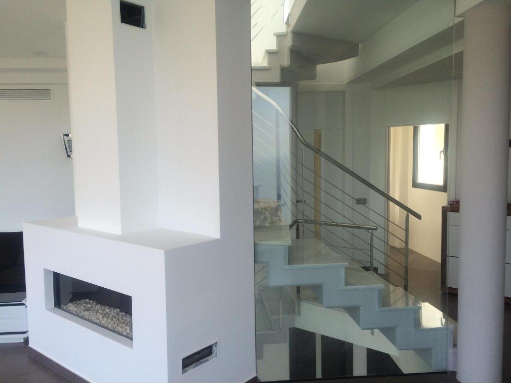 The villa features a built area of approximately 338 m² and offers four spacious bedrooms and three bathrooms, making it ideal as a family home or a refined second residence. The main living areas are bright and welcoming, with large windows that frame the Mediterranean landscape and connect directly to the outdoor terraces. A fully equipped modern kitchen complements the open and social layout of the home.