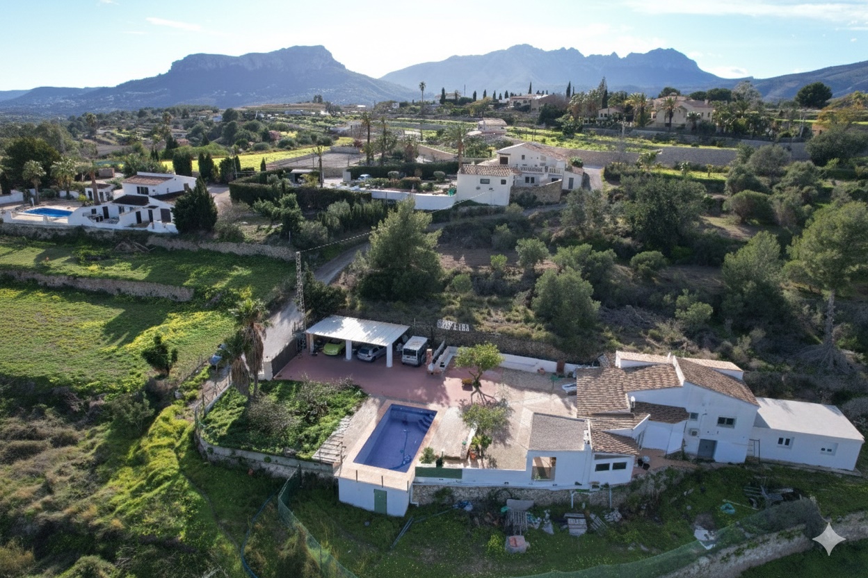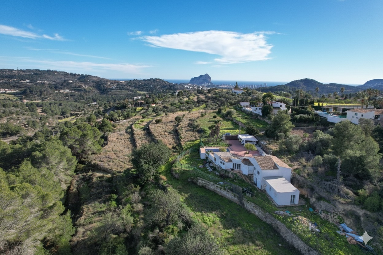 This charming Mediterranean villa enjoys a privileged location near Benissa and Calpe, offering breathtaking open views of the mountains, the Mediterranean Sea, and the iconic Peñón de Ifach. Set on a generous, private plot, the property features a swimming pool, multiple terraces, a fully equipped barbecue and summer kitchen, and ample parking for several vehicles. Inside, the villa blends traditional character with modern comfort, including a bright glass-enclosed living-dining area, three double bedrooms, two stylish bathrooms, parquet flooring, and air conditioning. Surrounded by nature yet just minutes from beaches, coves, and all amenities, this home is ideal as a permanent residence, holiday retreat, or high-demand rental investment on the Costa Blanca. Photos brightened and tidied up with AI.