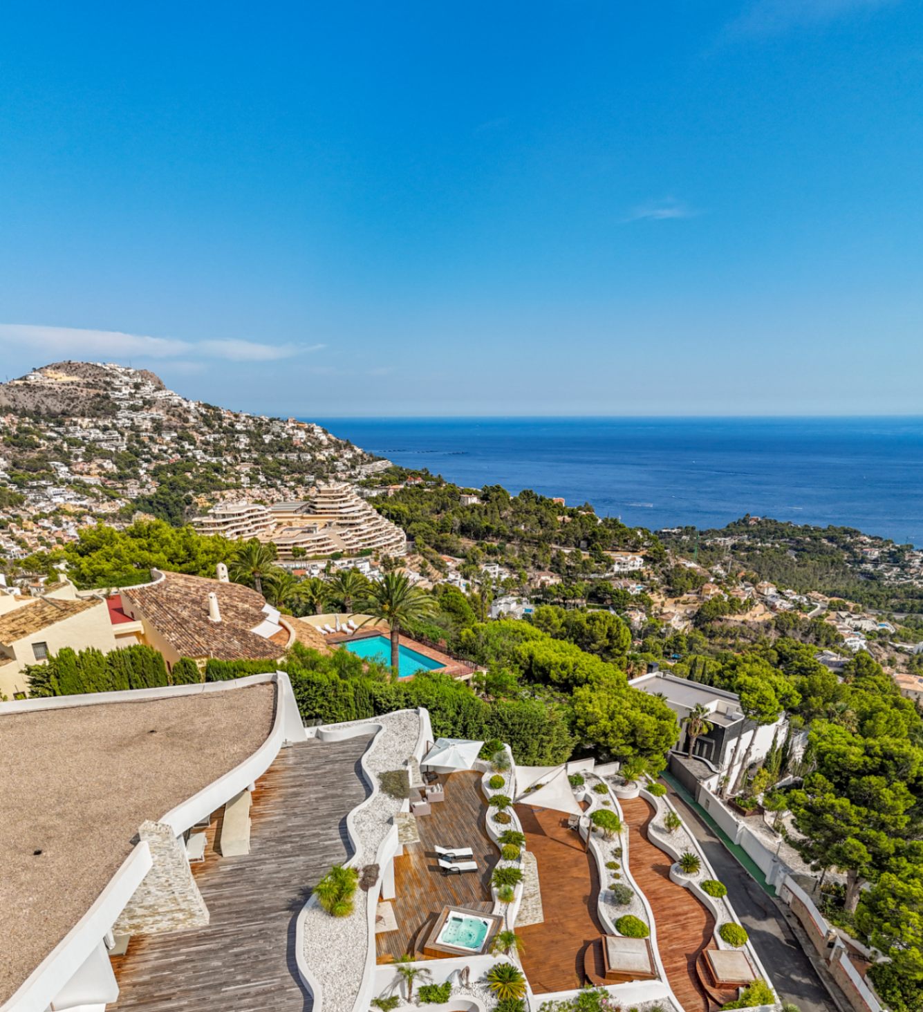 Exclusive apartment with panoramic views in Altea HillsThis exclusive residence is part of a development that offers beautifully landscaped gardens, a communal pool, social club and 24-hour security, making it one of the most prestigious communities on the North Costa Blanca.In the main living area, we have an open plan kitchen-dining-living room which offers the ultimate modern convenience. The lounge benefits from a projector and screen which is ready to transform the living room into a private cinema at the touch of a button, perfect for immersive movies nights. Here we also find the large open terrace. The expansive 110m2 terrace, complete with a private jacuzzi, offers the perfect space to relax, entertain and take in the Mediterranean surroundings. The private jacuzzi offers a retreat to unwind, a space made for moments of comfort, connection and pure enjoyment. With its southern orientation the home is bathed in natural sunlight throughout the day. Enjoy brighter interiors, lower energy costs and stunning light-filled views all year round.The home features 3 very well appointed bedrooms. Each room is thoughtfully designed to maximize comfort and natural light. Every room provides a sense of tranquility and privacy, perfectly suited for Mediterranean living. There are 3 bathrooms, one of them being an en-suite for the master bedroom. Finished with quality details, combining style and everyday convenience, offering both functionality and luxury. The residence includes a spacious 86m2 private enclosed double garage, offering secure accommodation for multiple vehicles. This versatile space can also be used as additional storage.The community includes an oasis like communal pool and gardens. Enjoy endless relaxation and fun, perfect for cooling off on warm Altea days. An ideal spot for soaking up the sun. Apart from the pool there is also a fully equipped private gym, giving you an ideal space to maintain a healthy lifestyle without leaving the comfort of your home.
