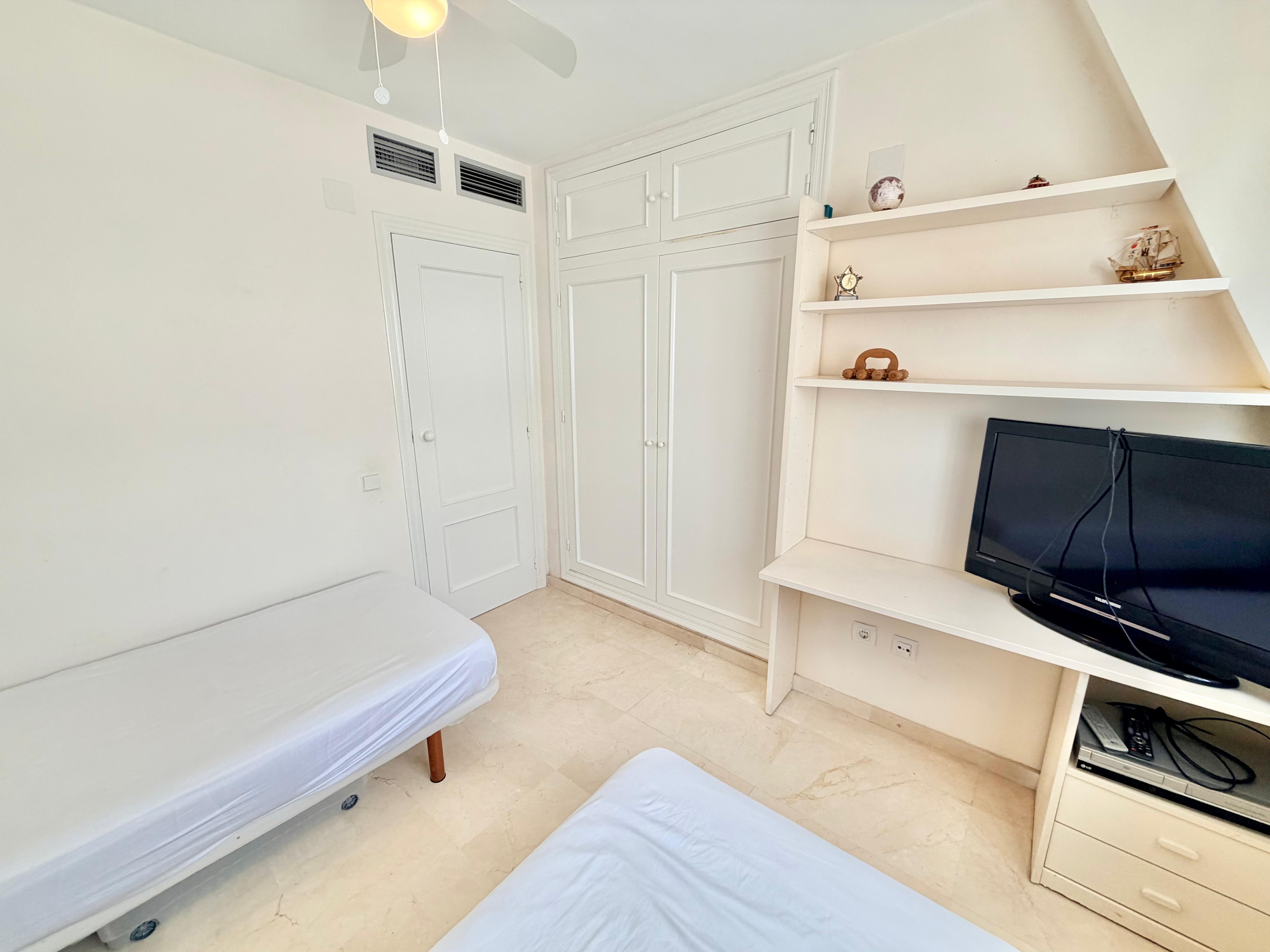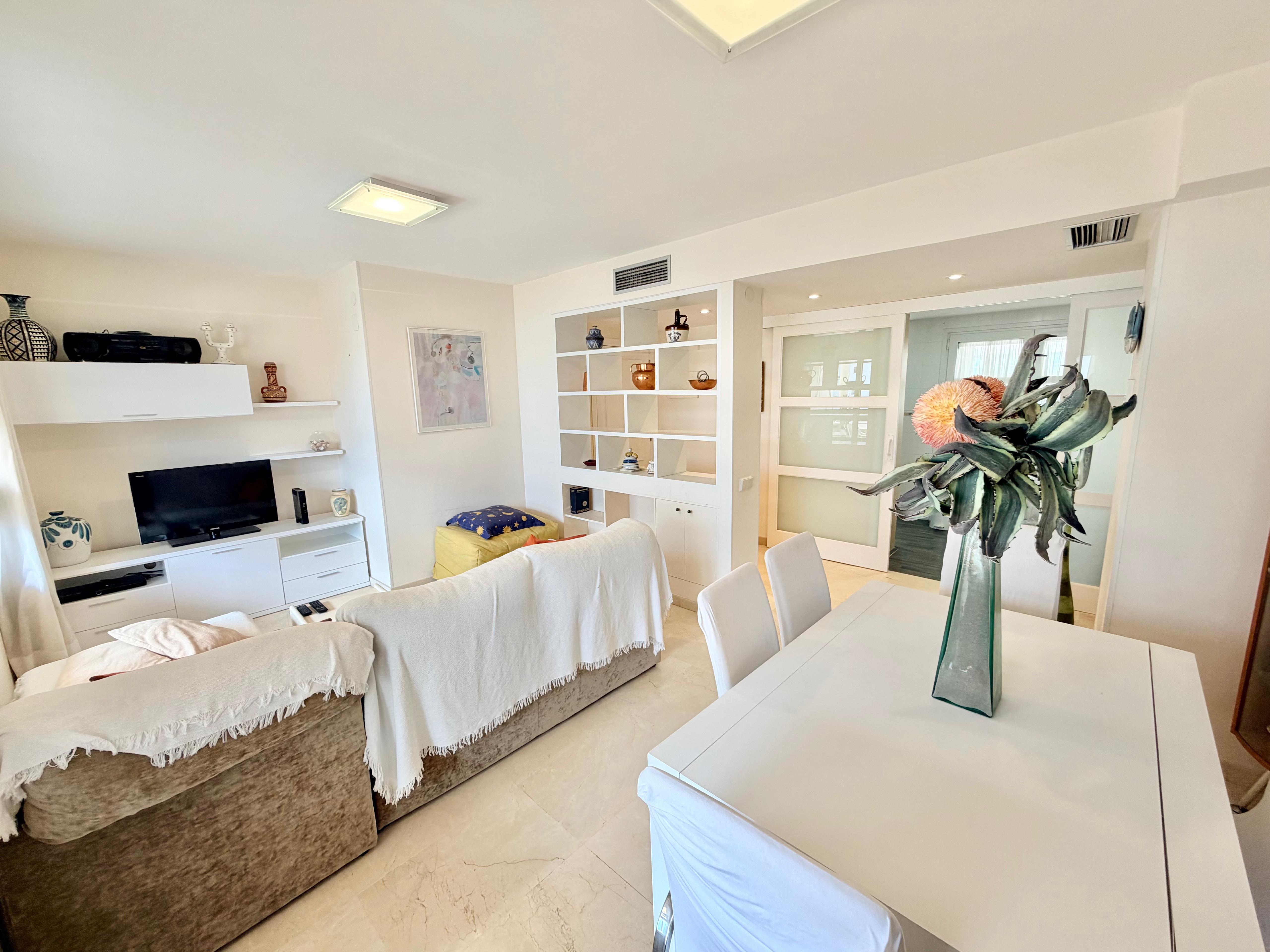 Available now until the end of June 2026. Also available from September until the end of June 2027. (FULL RENTAL PERIOD ONLY). Apartment for winter rental, top floor (3rd) with lift, there are 2 double bedrooms and 1 bathroom with walk in shower, lounge and dining room with access to covered south/east facing terrace) there is a second terrace off the master bedroom, hot and cold air conditioning throughout, fully equipped kitchen, separate utility area, wifi, in a well maintained complex with communal swimming pool and garden, located in Javea Port close to the sea and all amenities.