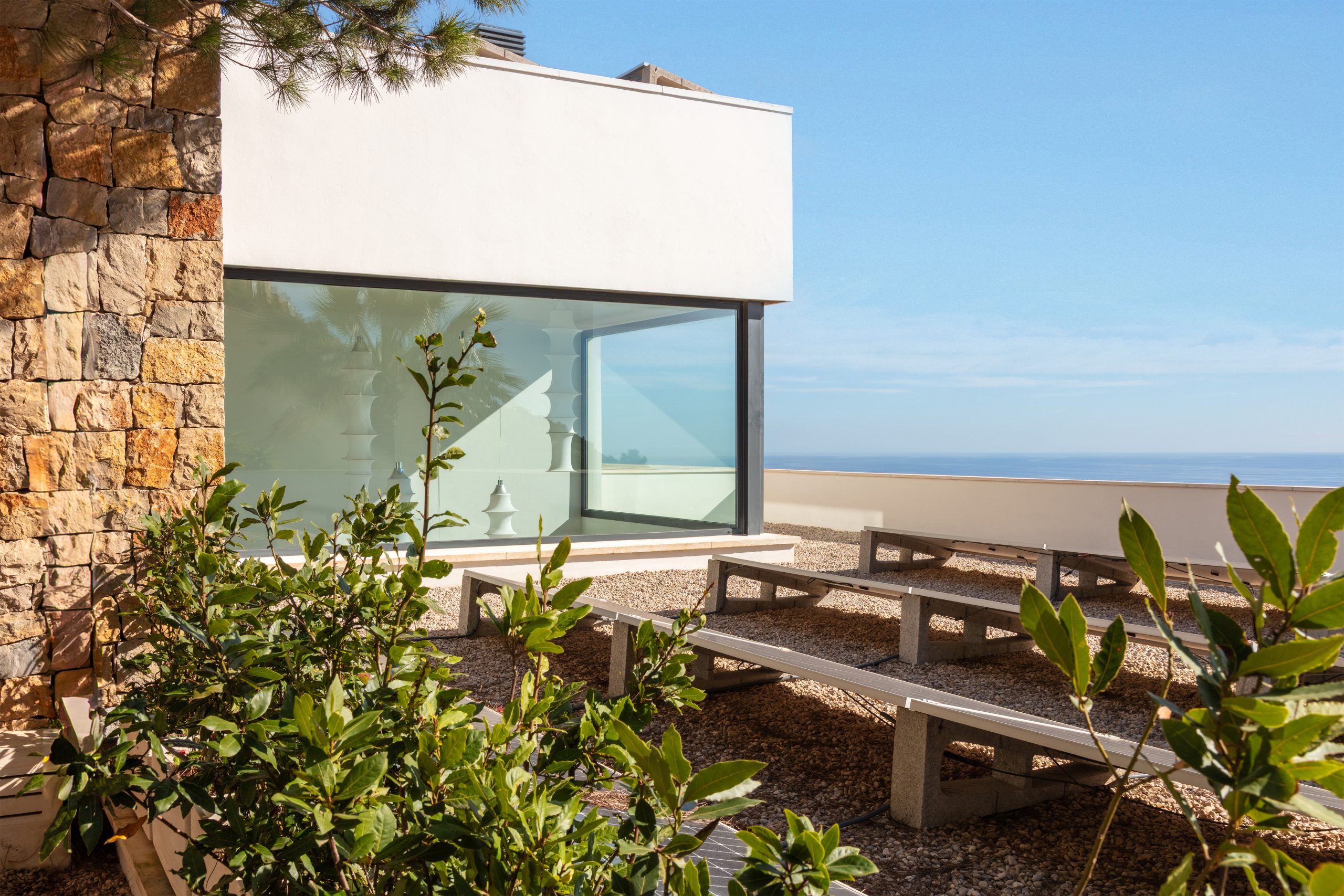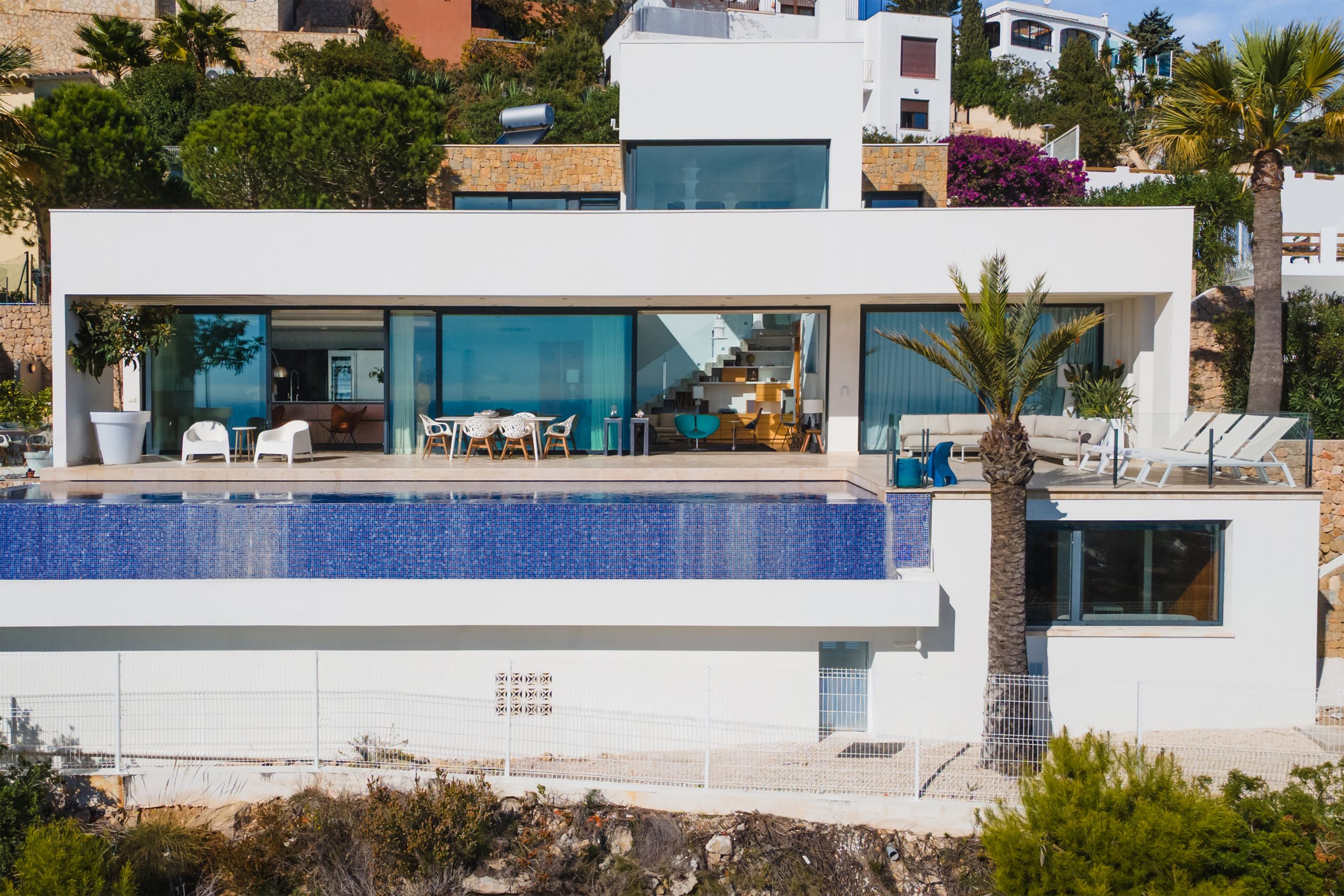 This exceptional designer luxury villa offers breathtaking 180º sea and coastal views, as far as Ibiza and Formentera on a clear day, and is located in the prestigious residential area of Las Dalias, Cumbre del Sol.