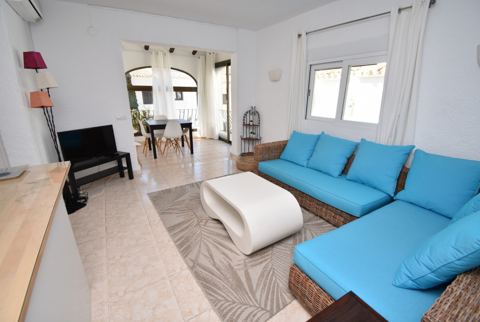 3 bedroom detached villa for long term rent in Toscamar, JaveaAvailable for long term rental the villa is split between 2 floors. The main level comprises of 2 bedrooms a shower room, lounge with open-plan kitchen and glazed covered terrace. At ground floor level there is a separate dwelling with a bedroom and shower room.There is air-conditioning in the lounge, main bedroom upstairs and the downstairs bedroom.There is a garden area for the use of the villa which is situated within a secure gated residential complex with gardens, communal pool, tennis courts and sports area.Located very close to the Arenal beach with all its amenities, bars and restaurants.2 months refundable security deposit and references required.