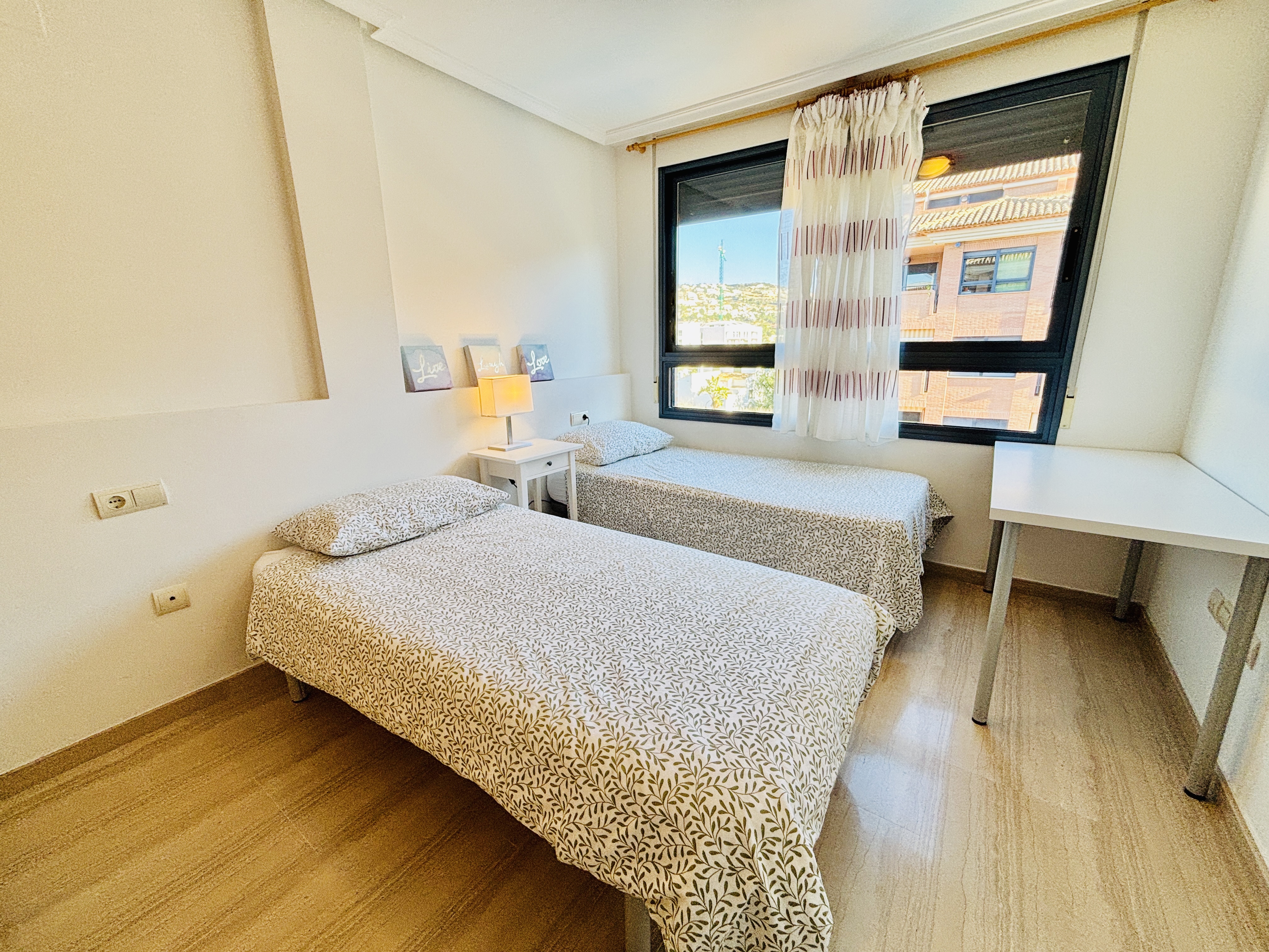 Available for 3 months. Feb, March and April 2025. Modern second floor apartment with lift, in a small complex located in between the Port and the old town of Javea, close to all amenities including supermarkets and restaurants, 2 bedrooms, 2 bathrooms, lounge/dining room with direct access to outside covered terrace overlooking the pool with mountain views, fully equipped kitchen, with new dishwasher and washing machine. The apartment has hot and cold air conditioning, super fast wifi, private parking space. No pets allowed sorry.