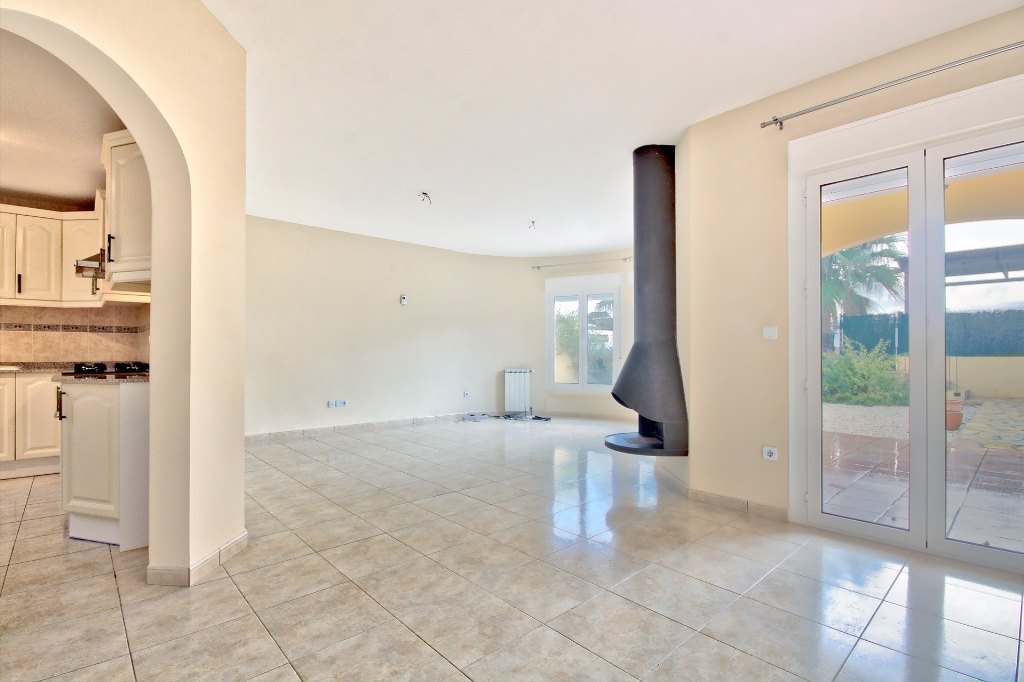 South facing detached villa just outside Gata de Gorgos. Lovely large lounge-diner, covered terrace and open terrace, kitchen with pantry, outdoor utility room, master suite with en-suite bathroom, dressing room and balcony, central heating throughout, pre-installled for air-conditioning, alarm system, fireplace, fly-screens, private garden and shared pool.