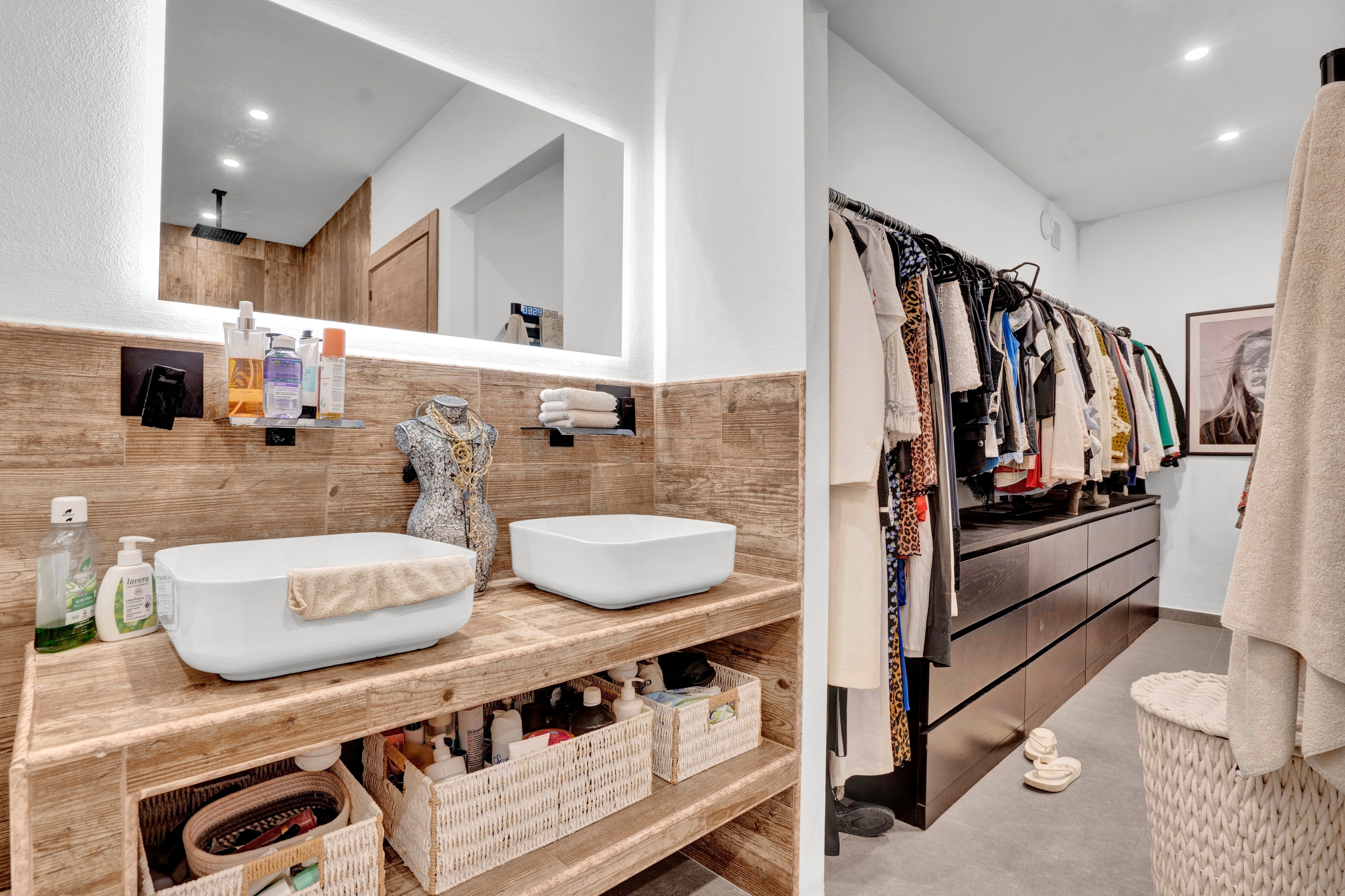On the upper floor, the master bedroom impresses with a private dressing room, en-suite bathroom, and direct access to a sunny terrace overlooking the scenic mountains the perfect place to start or end your day.