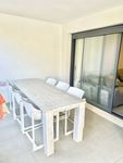 A spacious living and dining area with direct access to a large private balcony – perfect for al fresco dining or relaxing in the sun