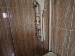 Inside, the layout is compact but full of possibility. You enter through a private front door into a short corridor. On the right is a bathroom with a shower, and on the left are two bedrooms. The living and dining area form an L-shape, with a third space currently open-plan that could easily be converted into a single third bedroom or office.
