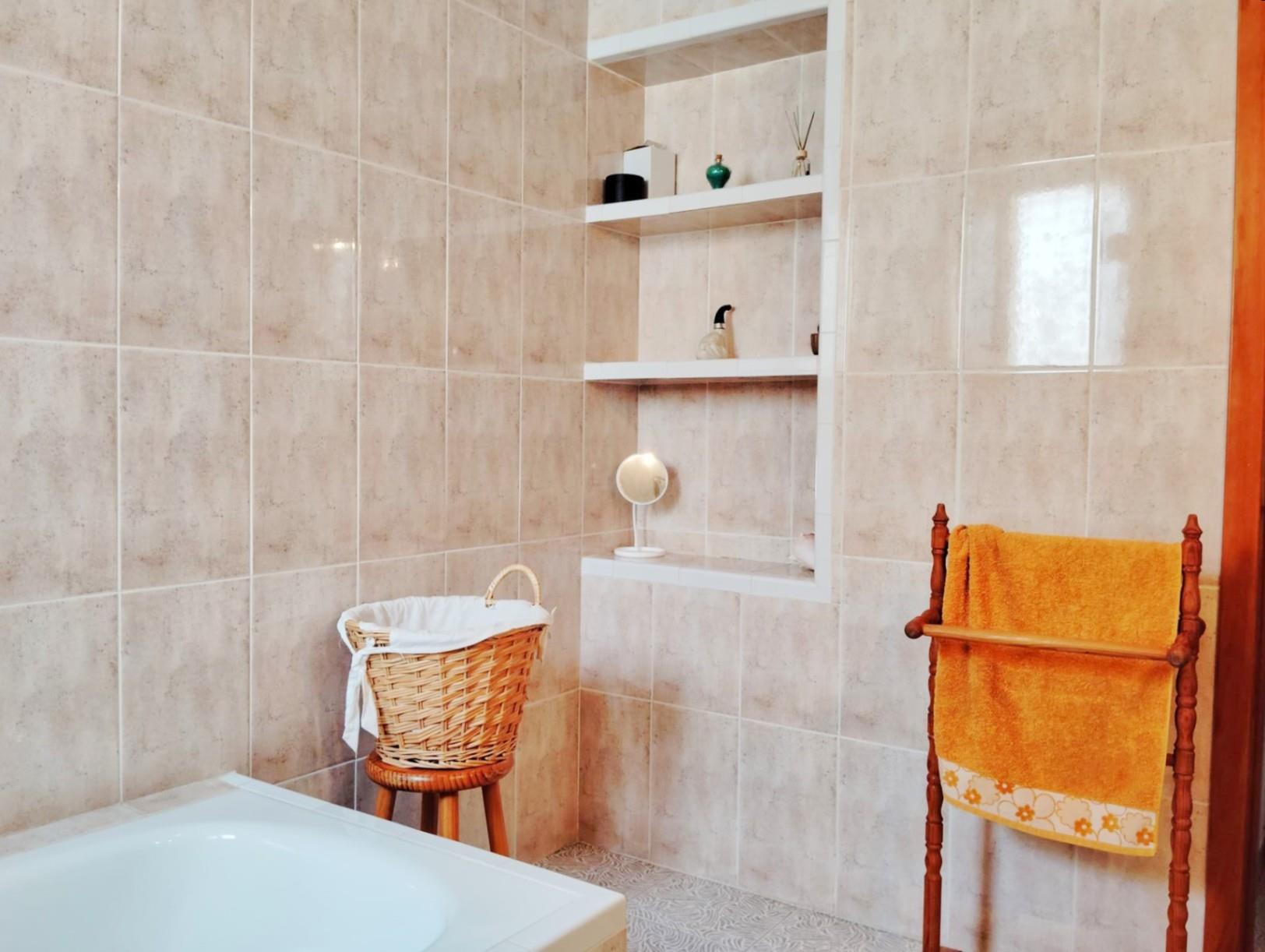 Stepping outside, the home reveals its true charm: a private swimming pool for cooling off on sunny days, an expansive garden perfect for gatherings, and a covered terrace with a barbecue area for dining alfresco. An outdoor shower, laundry room, and ample storage enhance everyday convenience, while the enclosed plot ensures privacy and security. A garage provides secure parking, and a water deposit supports efficient garden irrigation.