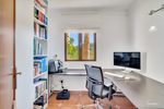 Ground Floor: Spacious living room with wood stove, dining room, country-style kitchen, utility room, office, guest toilet, and 2 bedrooms with en-suite bathrooms. Covered terraces extend living space outdoors.