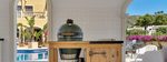 Enjoy Mediterranean outdoor living with a large swimming pool, freestanding jacuzzi, and fully equipped outdoor kitchen. Covered lounge and dining areas, adjacent poolside bathroom, and beautifully landscaped gardens make it perfect for relaxation and entertaining.