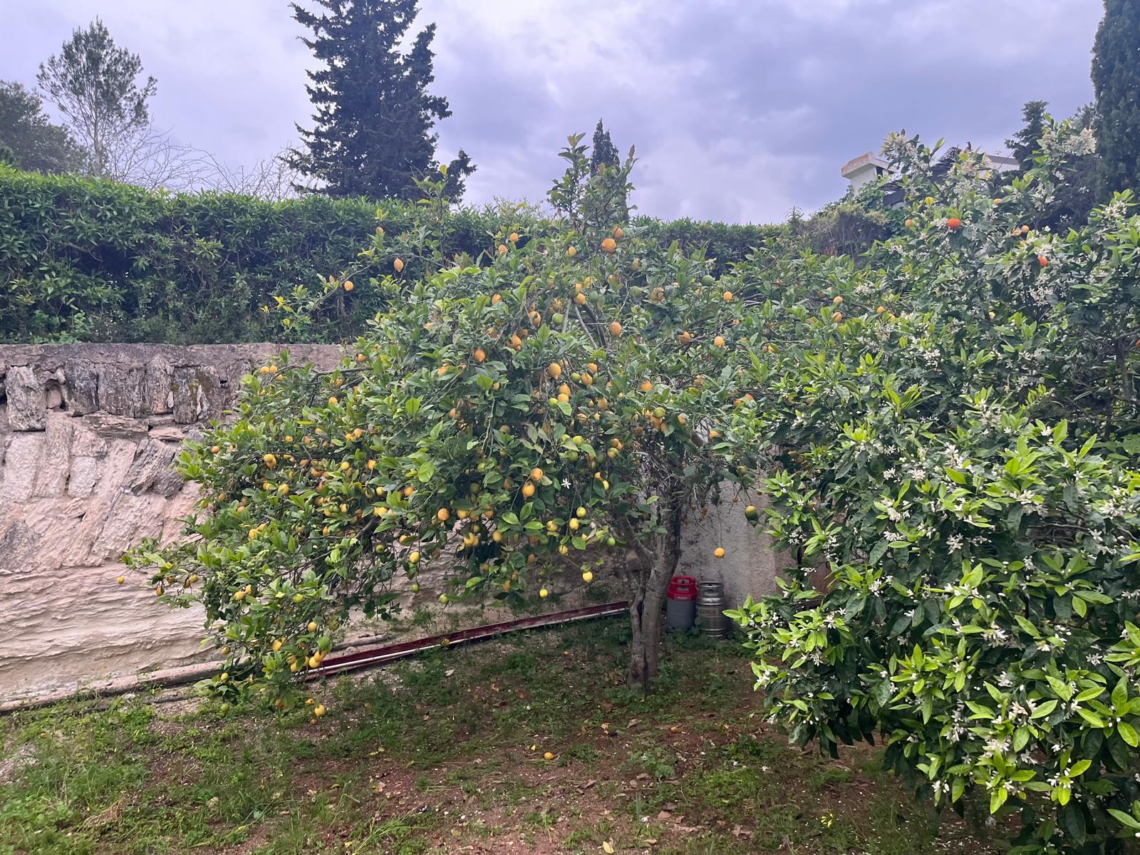 Set on a generous plot with dual road access, the property boasts a beautiful two-level garden filled with mature fruit trees, inviting terraces, and a private swimming poolideal for soaking up the Mediterranean sun.