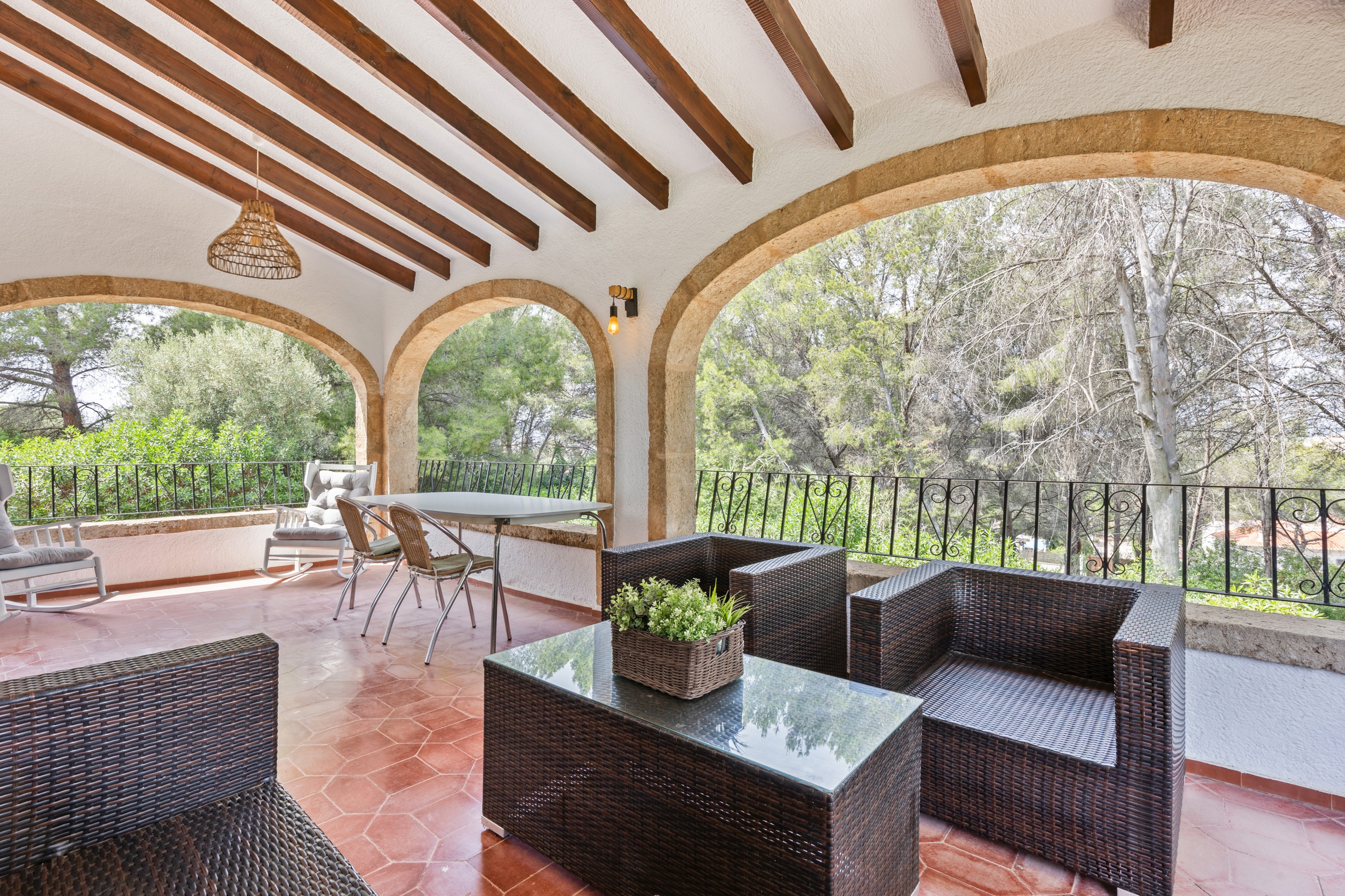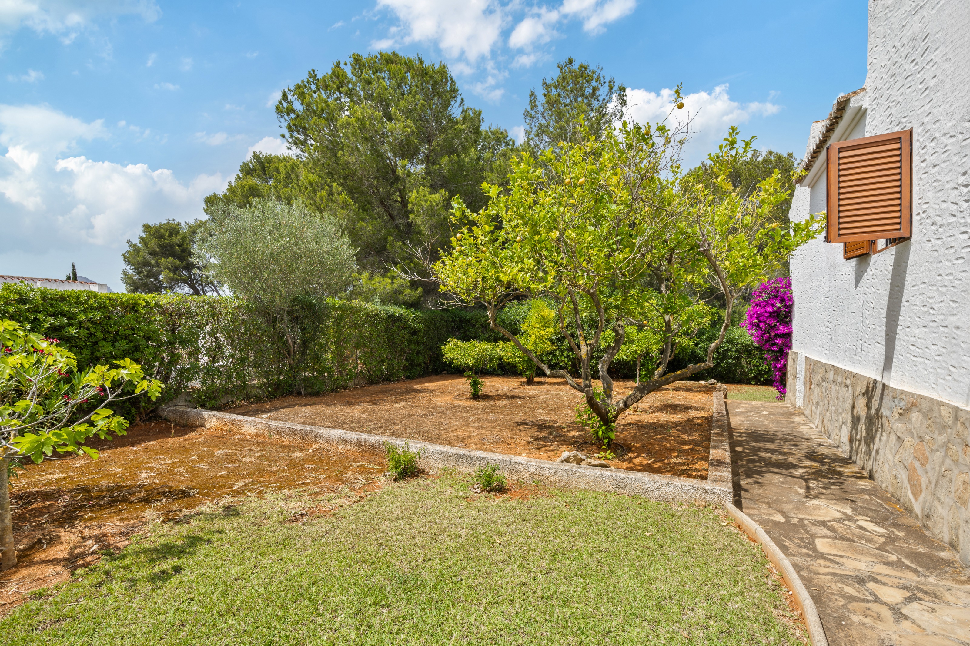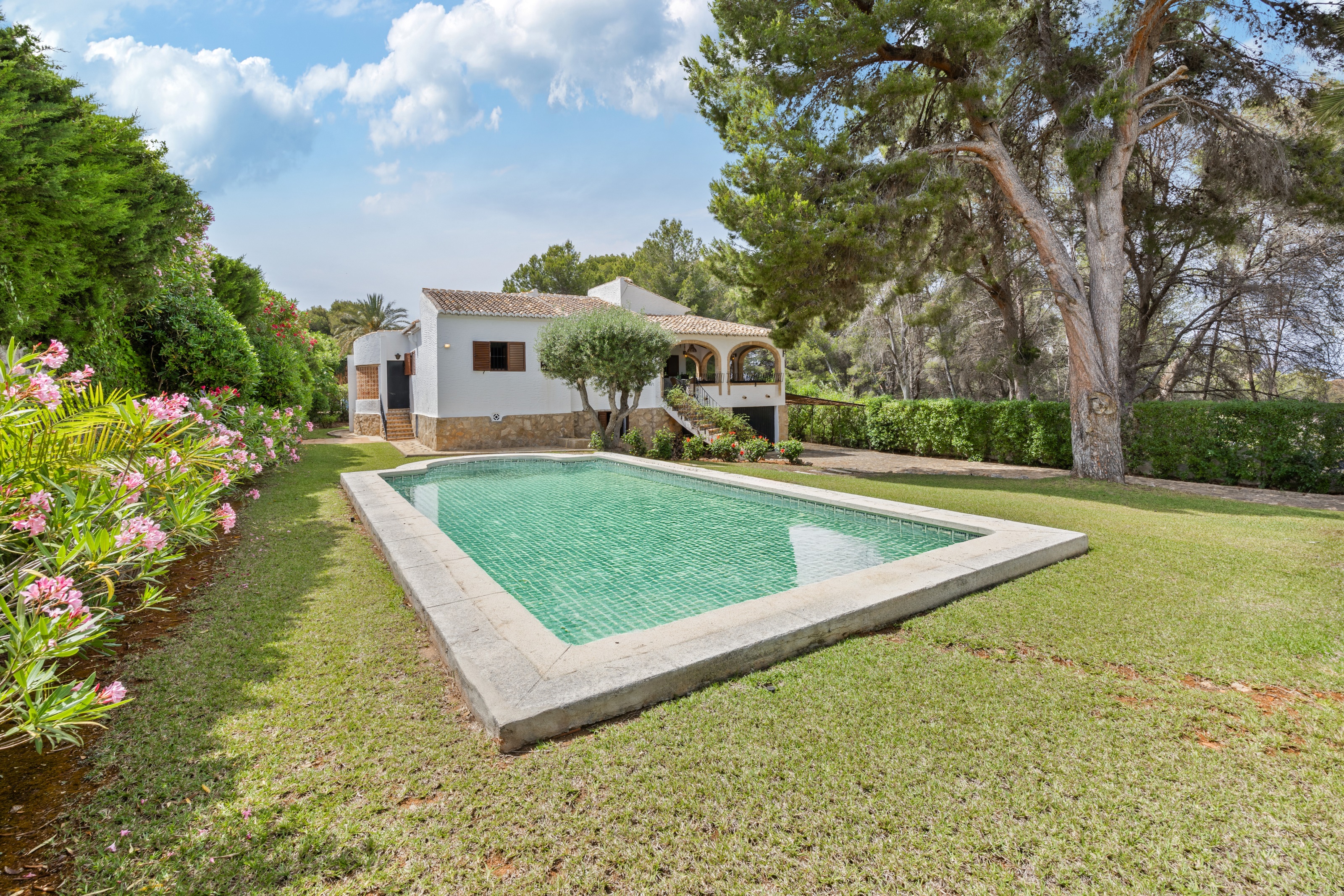 The home features a private swimming pool, lush garden, ample terraces, and on-site parking. It also includes fitted wardrobes, a storeroom, and abundant natural light thanks to its south-facing orientation. Just minutes from Arenal beach and all amenities, the location combines privacy with convenience.