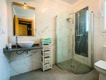 A hallway leads to four further double bedrooms. The guest room is served by a full family bathroom, while the remaining three bedrooms boast their own en-suite bathrooms. The master suite also benefits from a generous dressing area, creating a private, luxurious retreat within the home. Throughout the property, high-quality hot/cold air-conditioning units and gas central heating ensure year-round comfort.