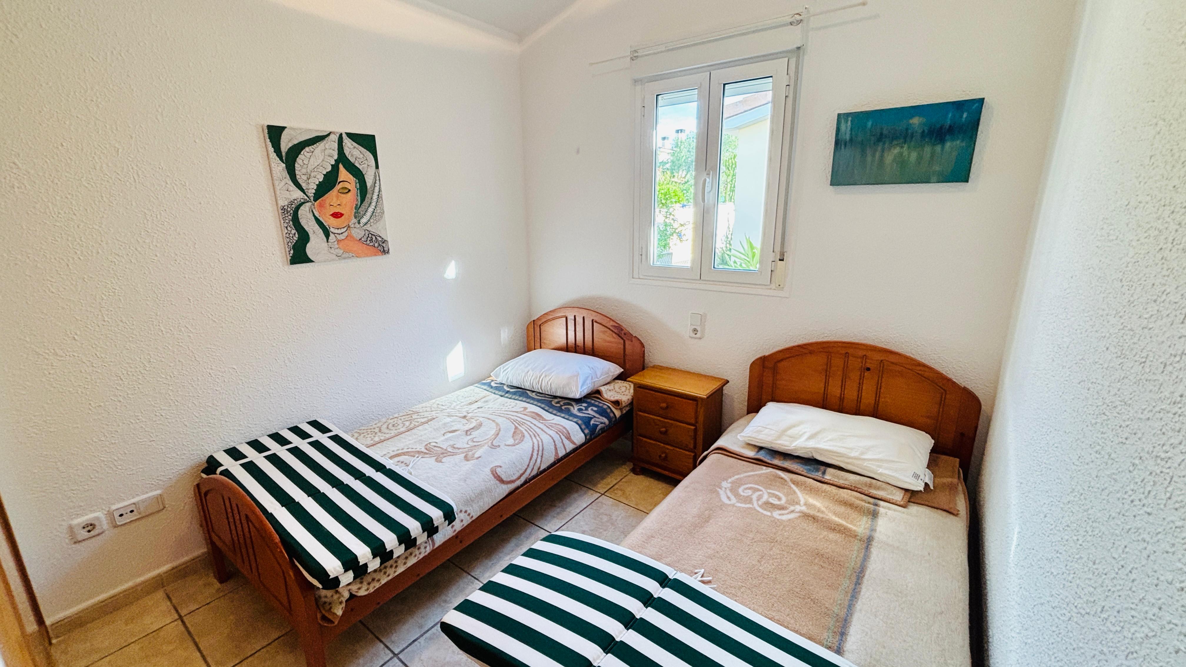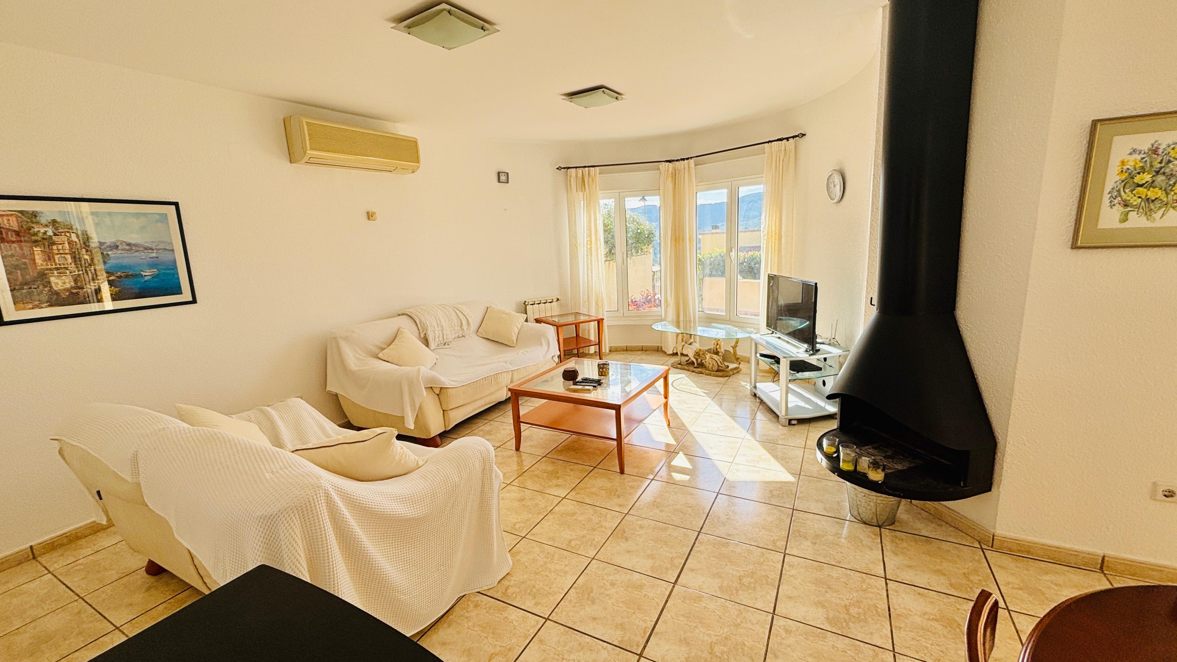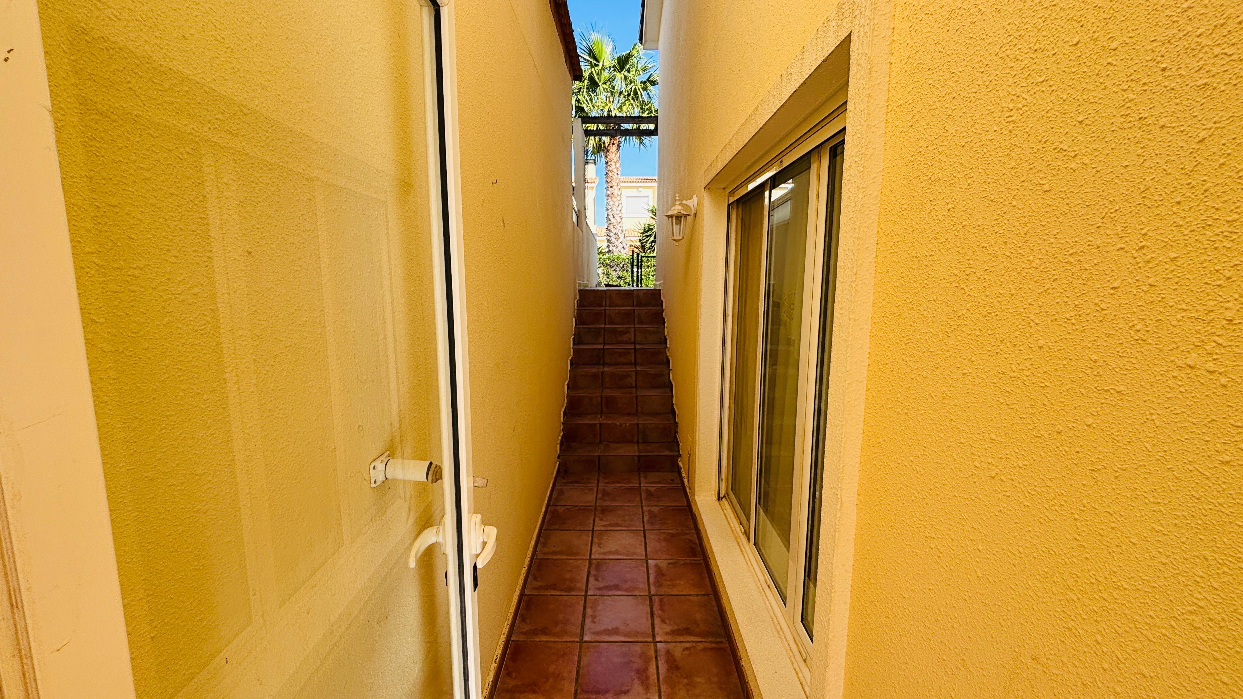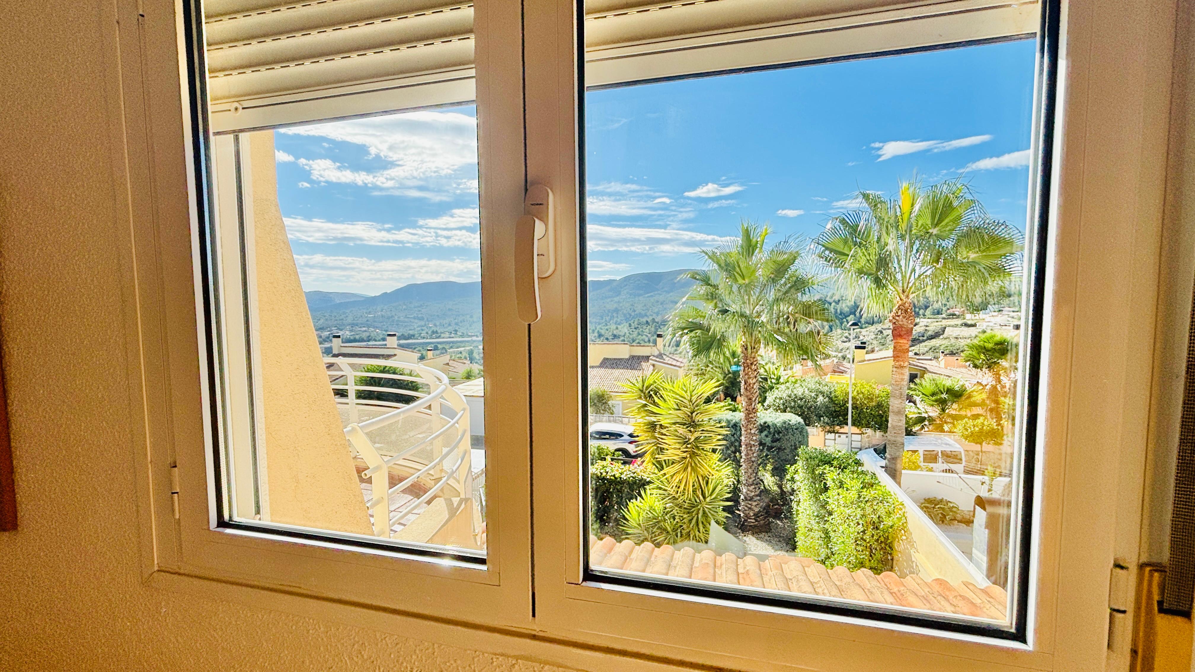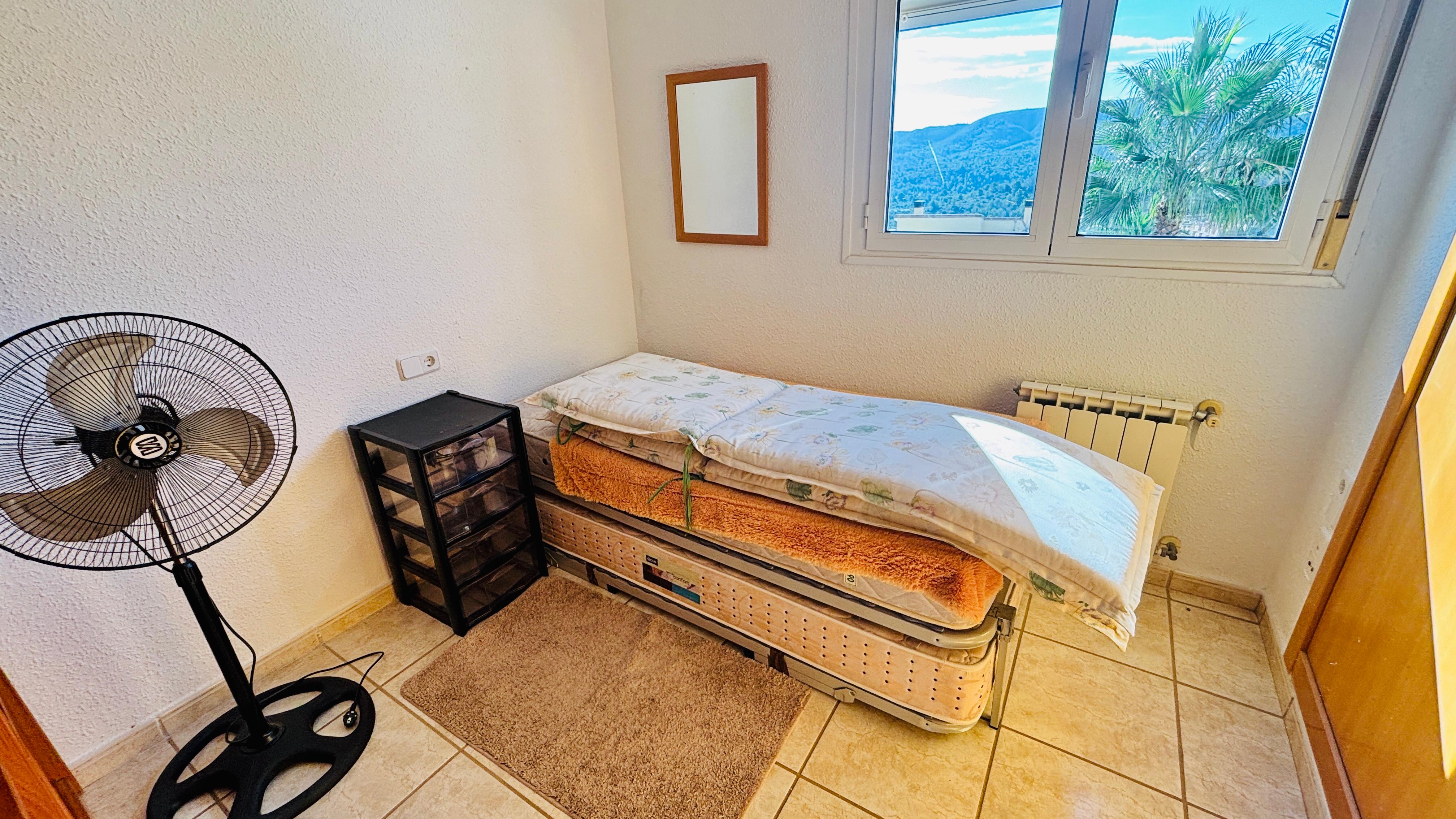 Private villa for sale in Residential Gata, community pool, south facing, in immaculate condition, the villa has 3 bedrooms, and 2 bathrooms, the master bedroom has double wardrobes, ensuite bathroom and a south facing terrace with great views, main level has spacious lounge/dining room, kitchen with pantry and external utility room, outside there is a covered and open spacious terrace with small garden with steps leading down to the private parking space, the communal pool is accessed via the rear of the property and is only 20 meters away, the property is located in a quiet residential area and has great views from the property.