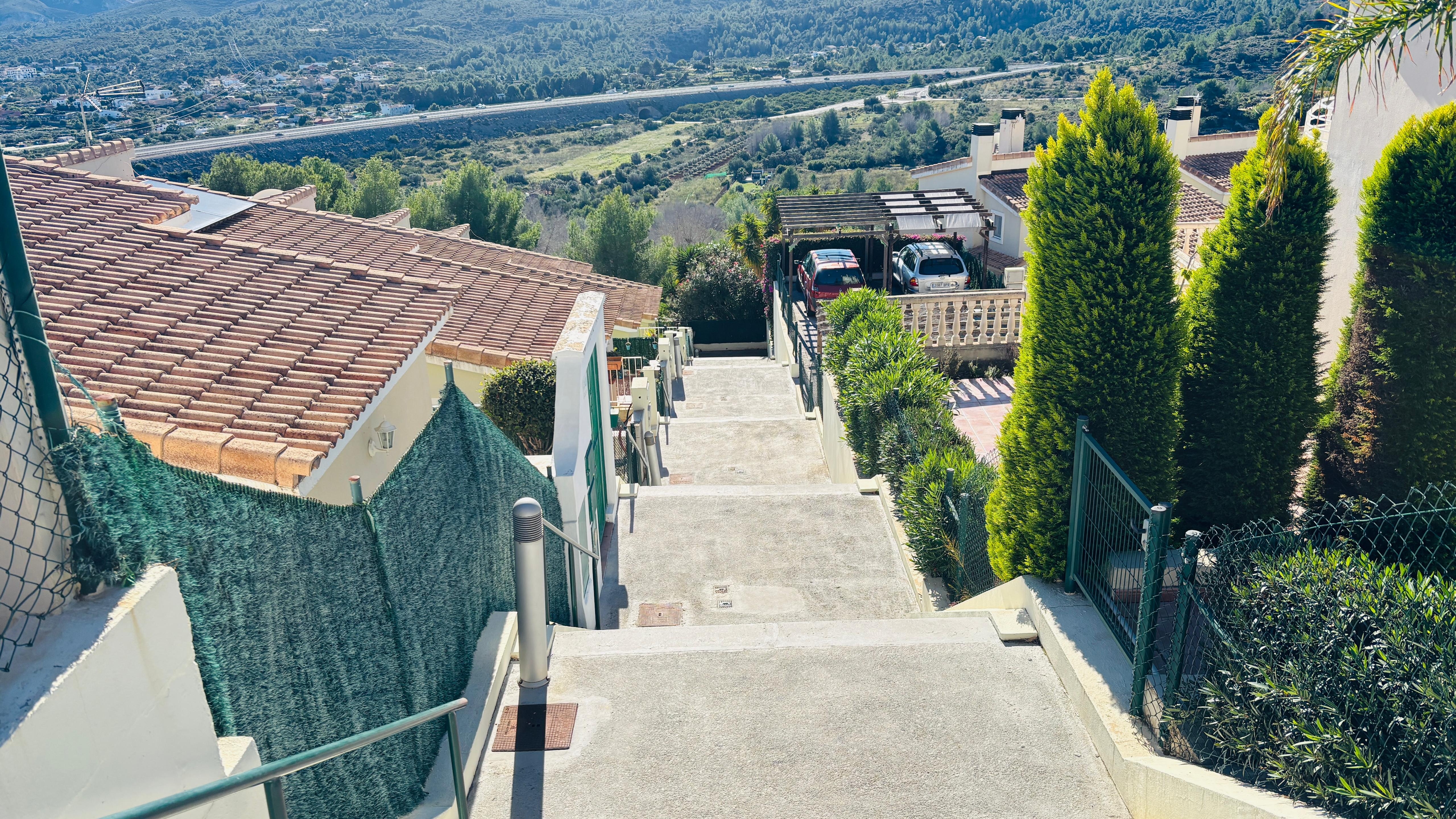 Private detached villa with garden and communal swimming pool with mountain views, consisting of 3 bedrooms and 2 bathrooms.