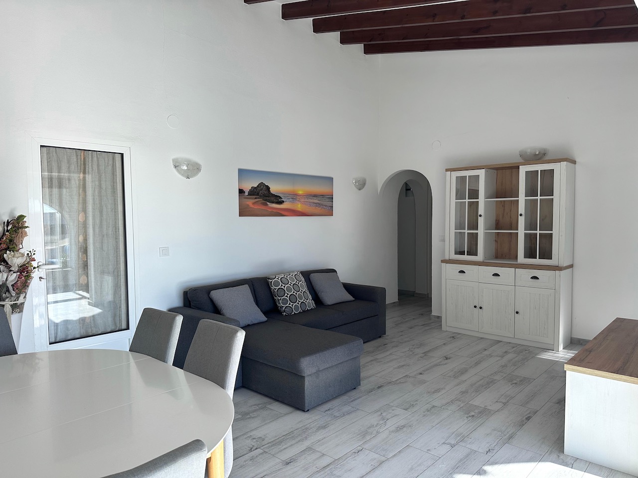 The villa offers three bedrooms, all equipped with air conditioning, a refurbished bathroom with a walk-in shower, and an additional guest toilet. The layout is ideal for both permanent living and holidays, with all main living areas conveniently arranged on the same level.