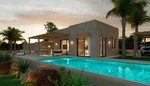 We present to you this magnificent modern Mediterranean-style villa. Situated in an exceptional location and just a short drive from all services. The villa features rounded corners, beautiful vaulted ceilings with wooden beams, and large windows that provide plenty of natural light. The property is all on one level, offering a very spacious living-dining room, open to a fully equipped kitchen with cabinets and a large bar that separates the spaces, and with access to a laundry room, which greatly facilitates daily life. There is a guest toilet, perfect for our visitors, and three generously sized bedrooms with fitted wardrobes and en-suite bathrooms, making up the interior of the property. Outside the villa, we find a lovely garden, a pool, and spacious terraces, ideal for enjoying the Mediterranean climate. The villa is equipped with parking for two cars with a pergola, air conditioning (hot/cold), Wi-Fi connection, intercom, and a home automation system for the lighting.