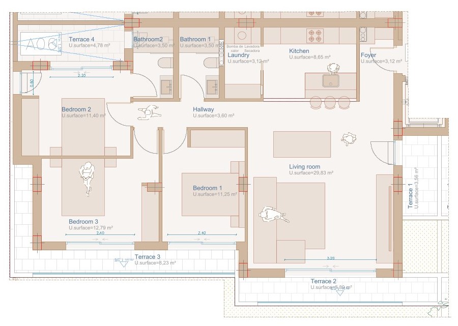 New residential project in the area of the town of Jávea, distributed over four floors and nine exclusive apartments, with optional parking space and storage room. This modern first-floor apartment will feature both covered and uncovered terraces, perfect for enjoying the outdoors. The property will consist of three bright double bedrooms, with fitted wardrobes and access to the terraces; the master bedroom will have an en-suite bathroom, and the other two bedrooms will share a full bathroom, equipped with Italian showers and suspended toilets. The spacious and bright living-dining room will open onto the terrace, and the kitchen will be open-concept, fully equipped, allowing customers to choose colors from the proposed range, and it will include integrated appliances. A laundry/pantry next to the kitchen will make daily life easier. The apartment will have double-glazed windows with electric blinds, centralized hot/cold air conditioning, and underfloor heating, as well as a fantastic communal pool. A perfect home for regular residence, investment, or to enjoy our holidays.