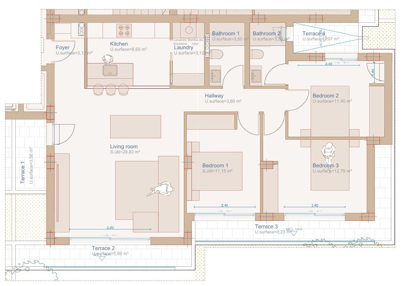 New residential development in the area of the village of Jávea, distributed over four floors and nine exclusive apartments, with optional parking space and storage room. This modern apartment on the first floor will feature covered and uncovered terraces, perfect for enjoying the outdoors. The property will consist of three bright double bedrooms, with fitted wardrobes and access to the terraces; the master bedroom will have an en-suite bathroom, and the other two bedrooms will share a full bathroom, equipped with Italian showers and wall-hung toilets. The spacious, bright living-dining room will have access to the terrace, and the kitchen will be open concept, fully equipped, with clients able to choose colors from a proposed range, and integrated appliances will be included. A laundry/storage room adjacent to the kitchen will facilitate daily living. The apartment will have double-glazed windows with electric blinds, centralized hot/cold air conditioning, and underfloor heating, as well as a fantastic communal pool. A perfect home for primary residence, investment, or for enjoying our holidays.