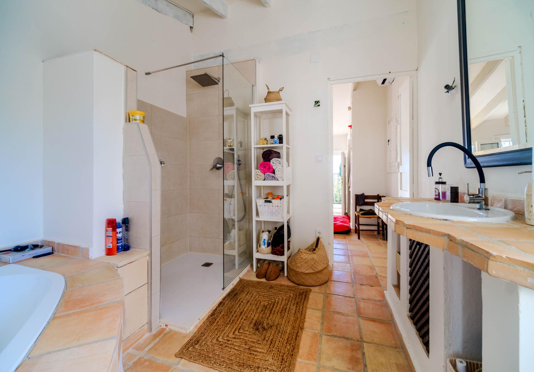 Harmoniously integrated with the main house are two independent guest flats, each with two bedrooms and a full bathroom, guaranteeing privacy and comfort for guests. In addition, a generous laundry room adds extra functionality.