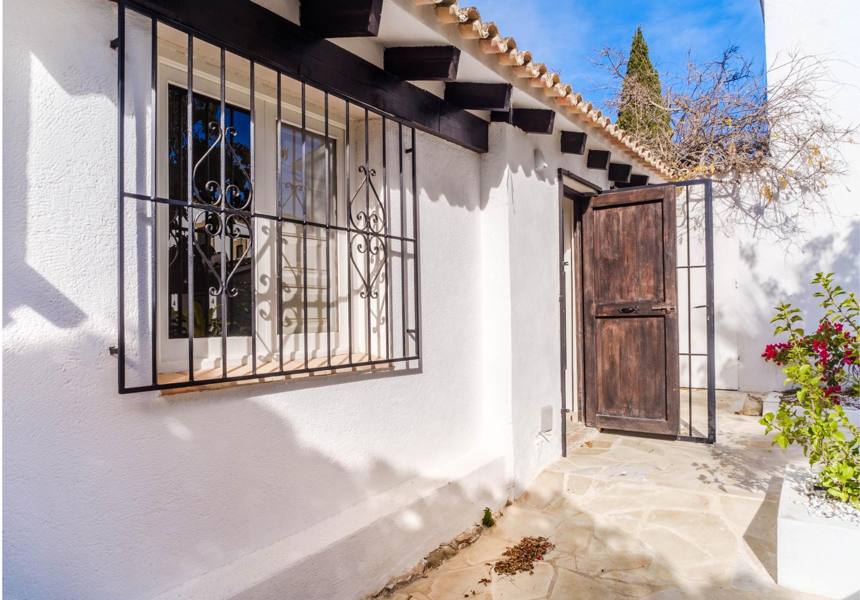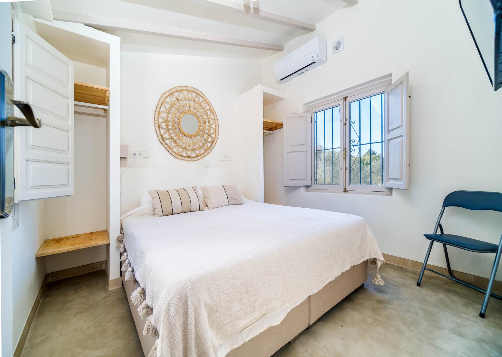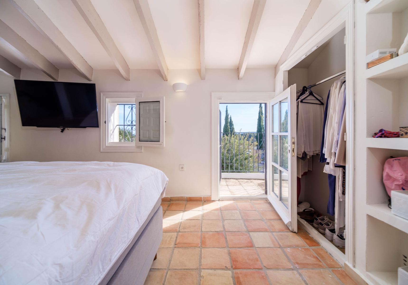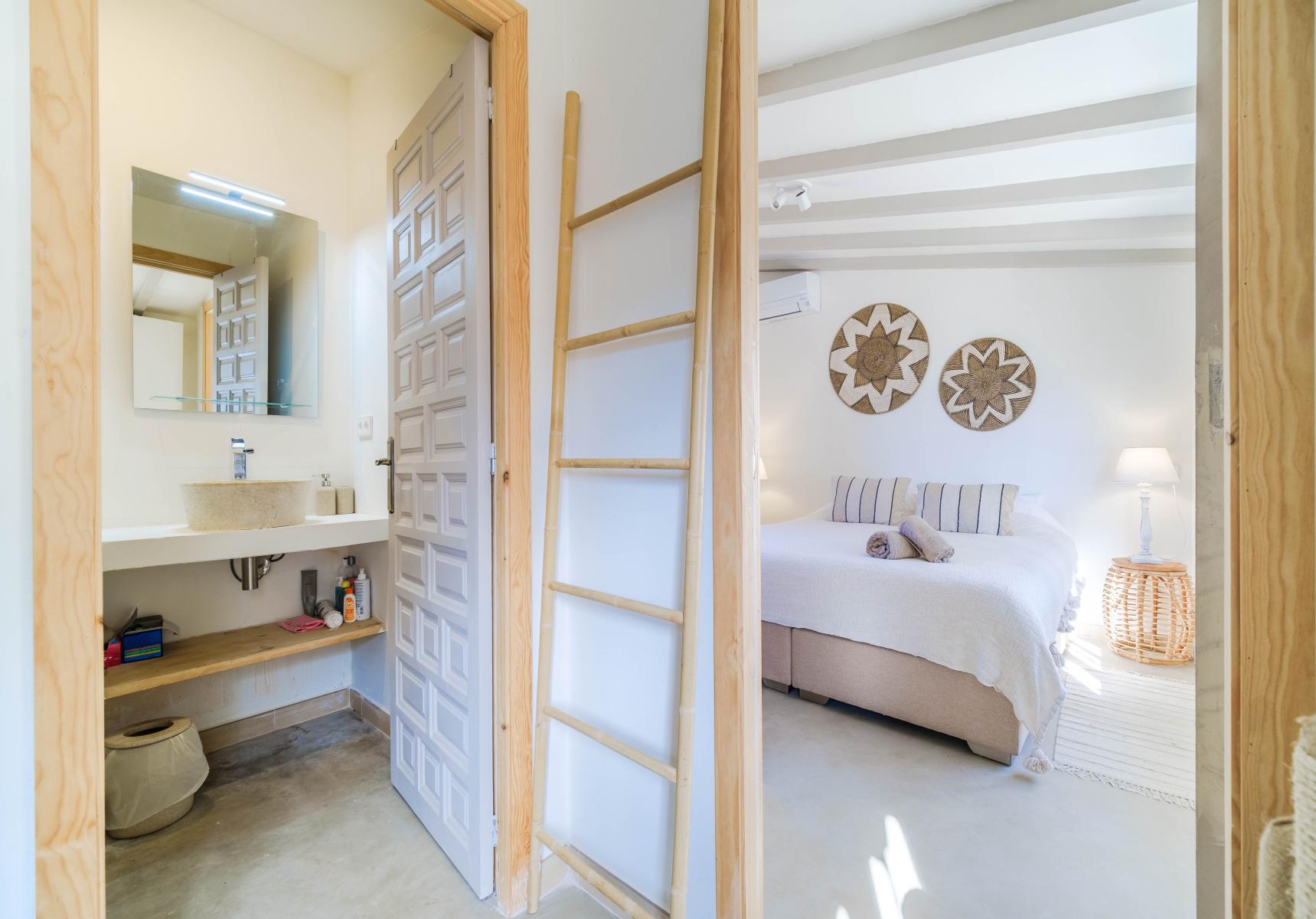 Ascending a distinguished staircase leads to the upper floor, where the sumptuous master bedroom with dressing room and en-suite bathroom is located. From here, a private terrace opens onto a panoramic view of the majestic Montgó.