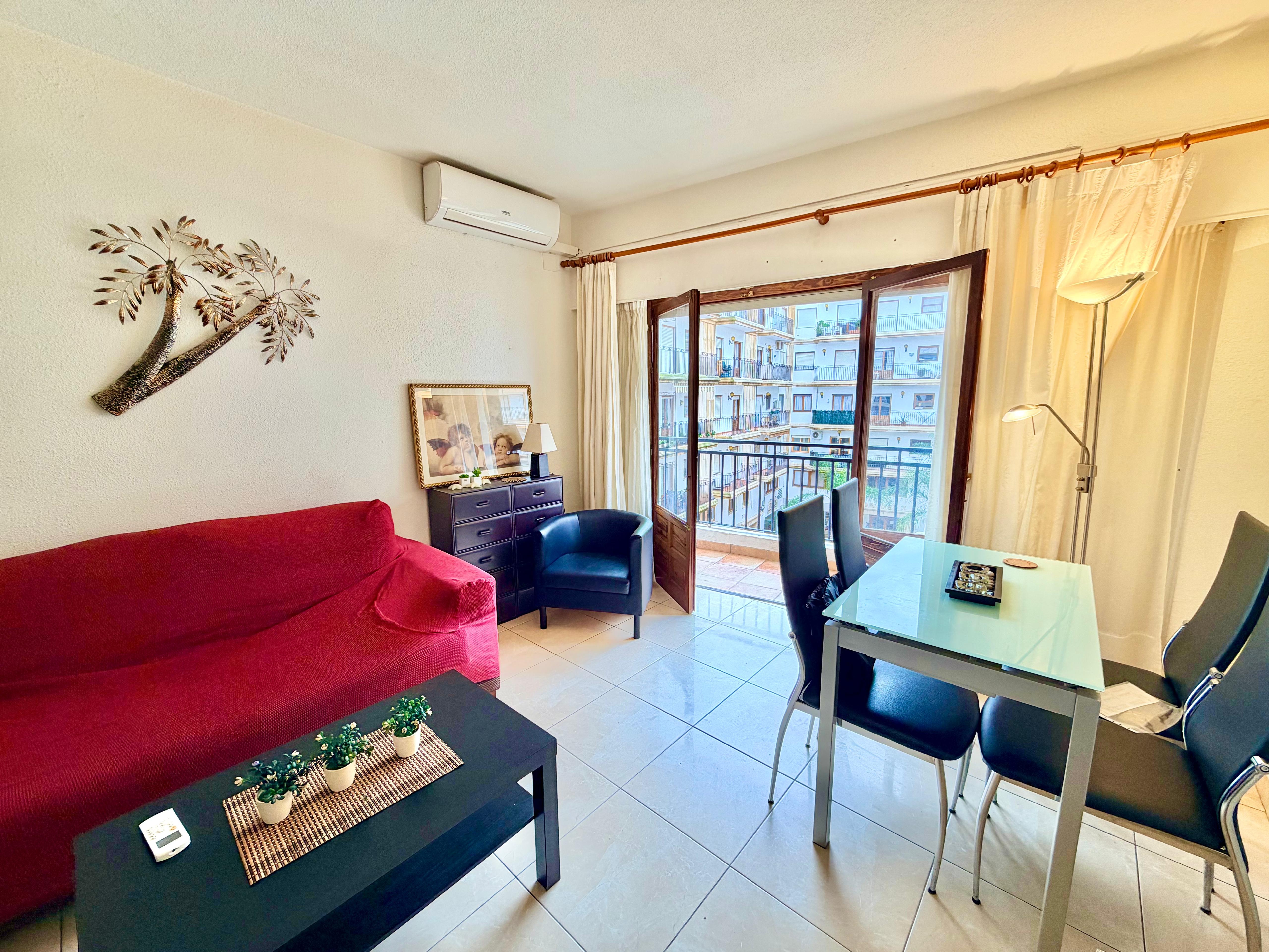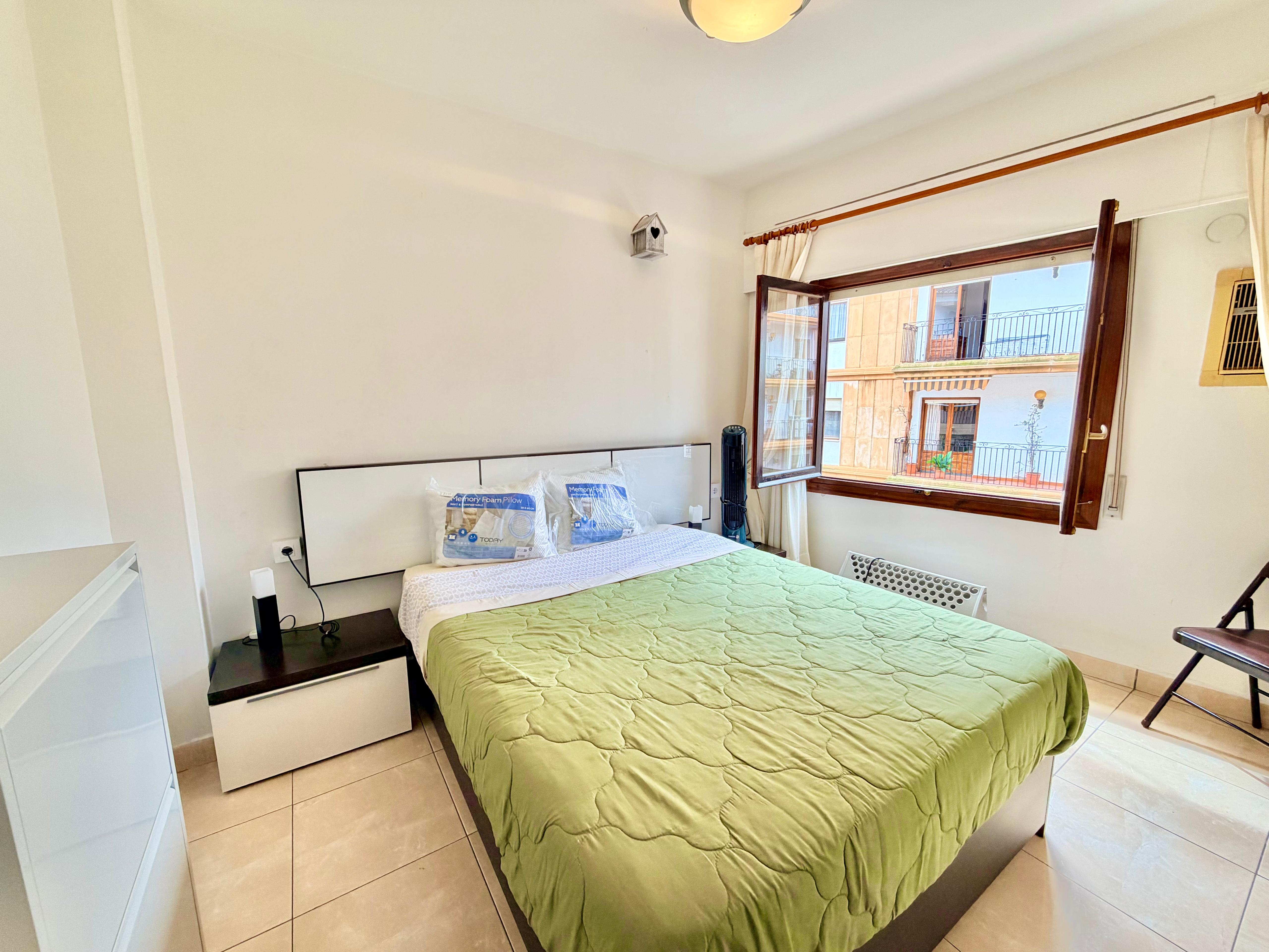 Available now until the end of June 2026. 3rd floor apartment with lift, there are 2 bedrooms and 1 bathroom with walk in shower, lounge and dining room with access to a long balcony with open views hot and cold air conditioning, west facing, fully equipped kitchen. Located in the heart of Javea Port, within walking distance to the beach and all amenities.
