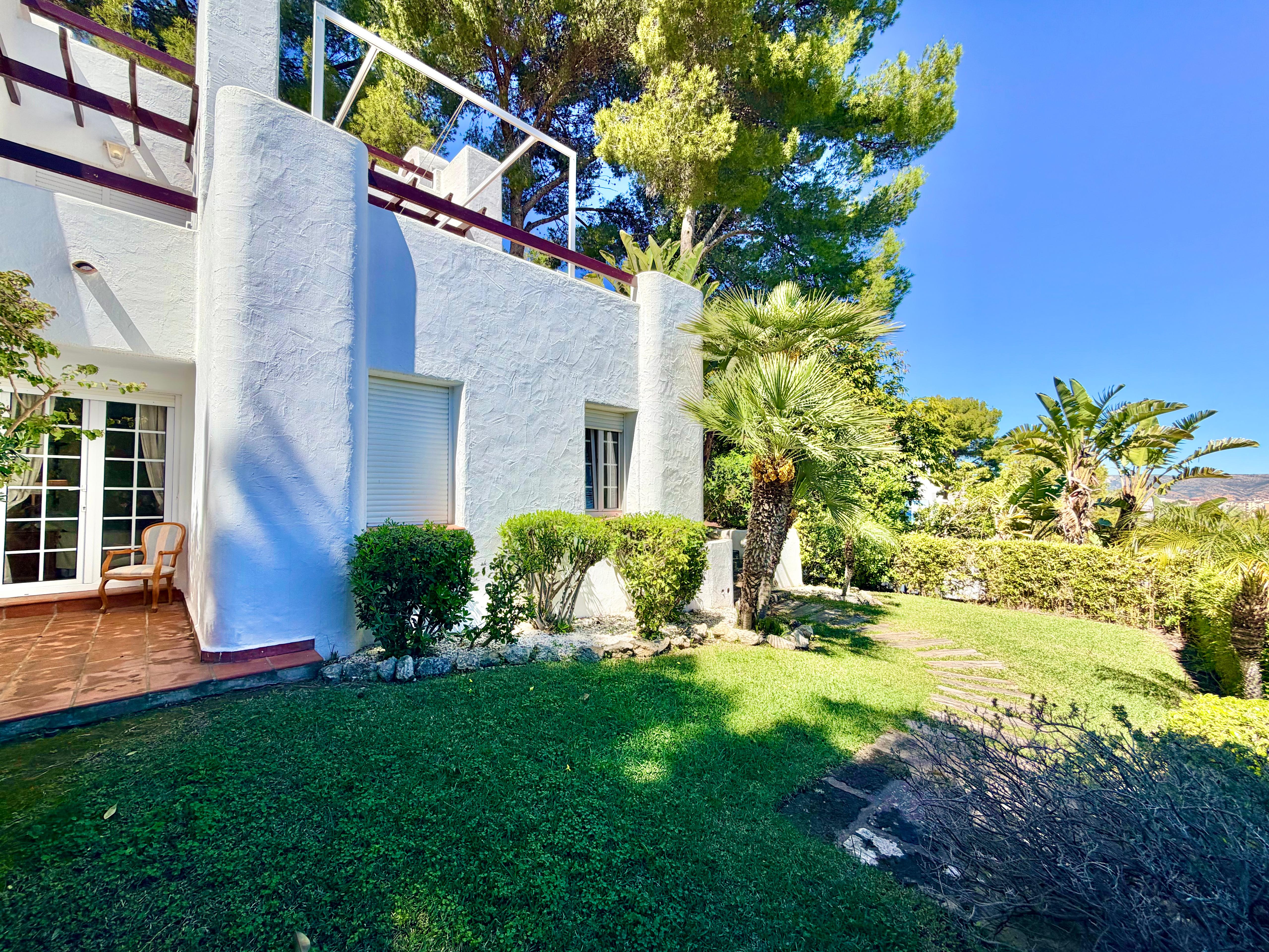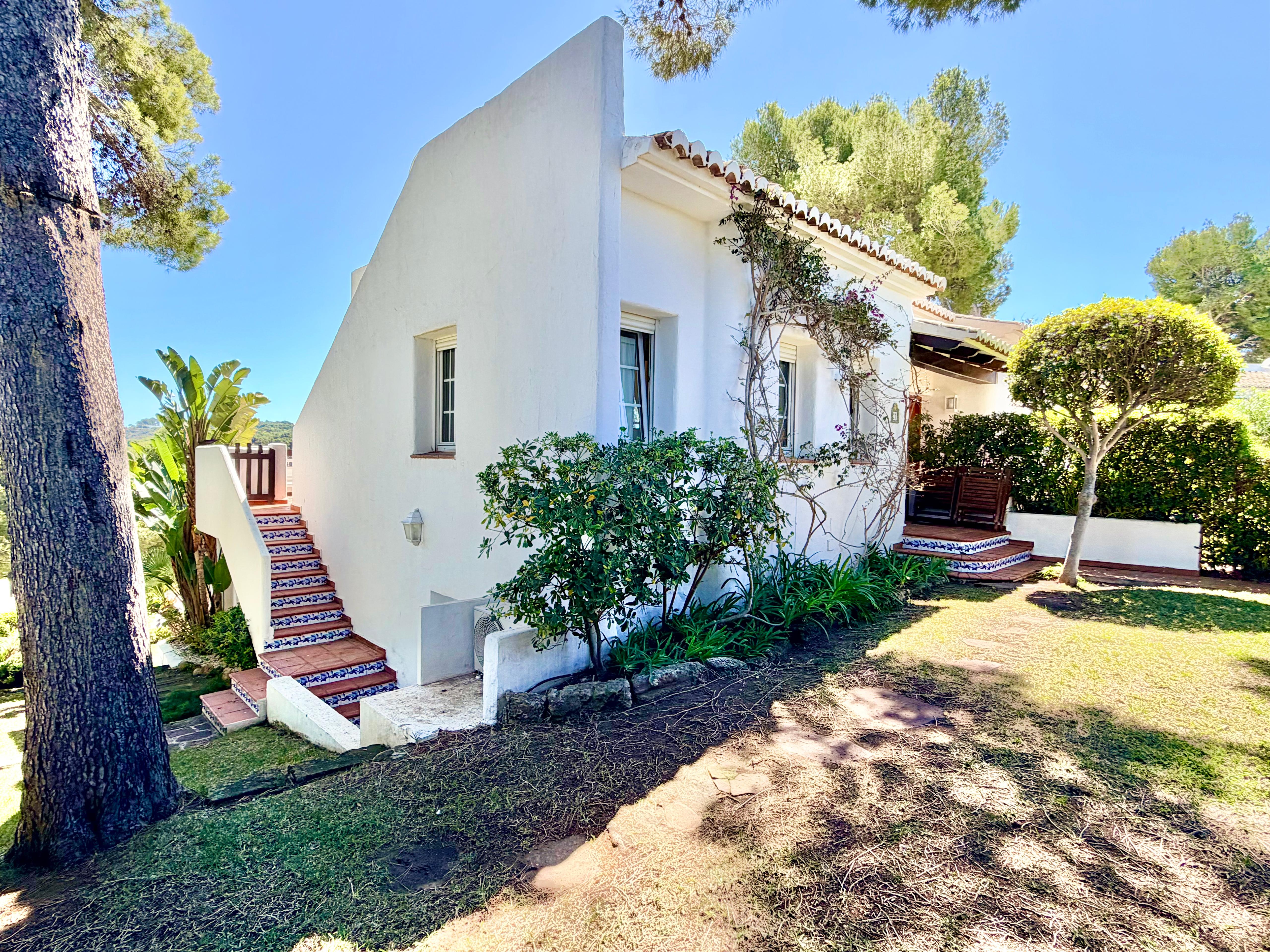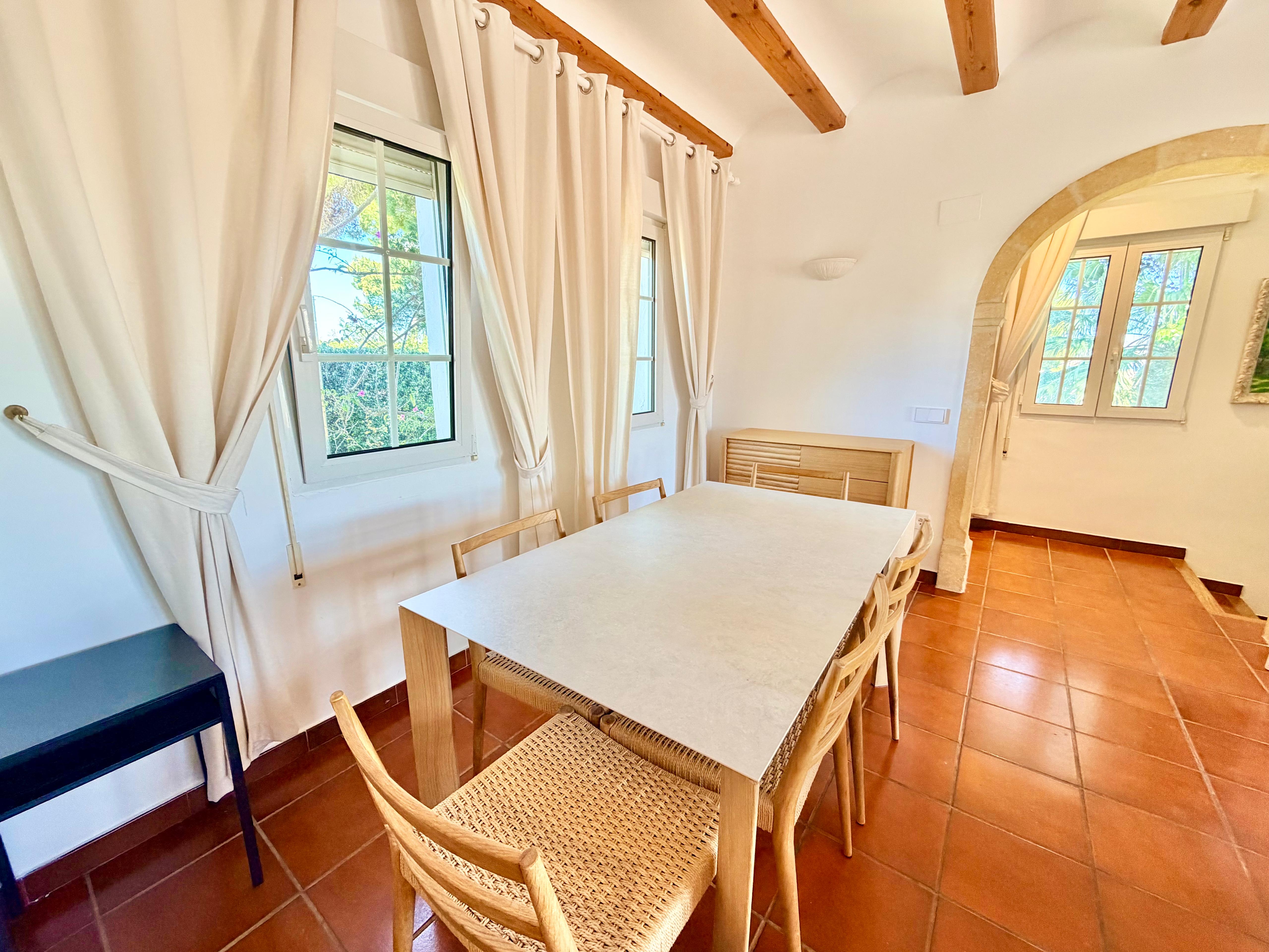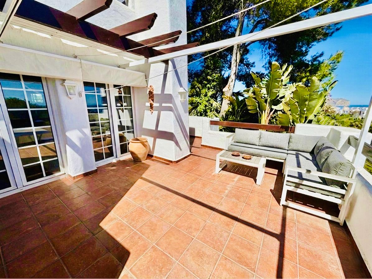 This beautiful Ibiza-style small villa with 3 bedrooms and 2 bathrooms has three levels and offers bright, spacious living with stunning sea views. Located close to the Arenal beach and all amenities.