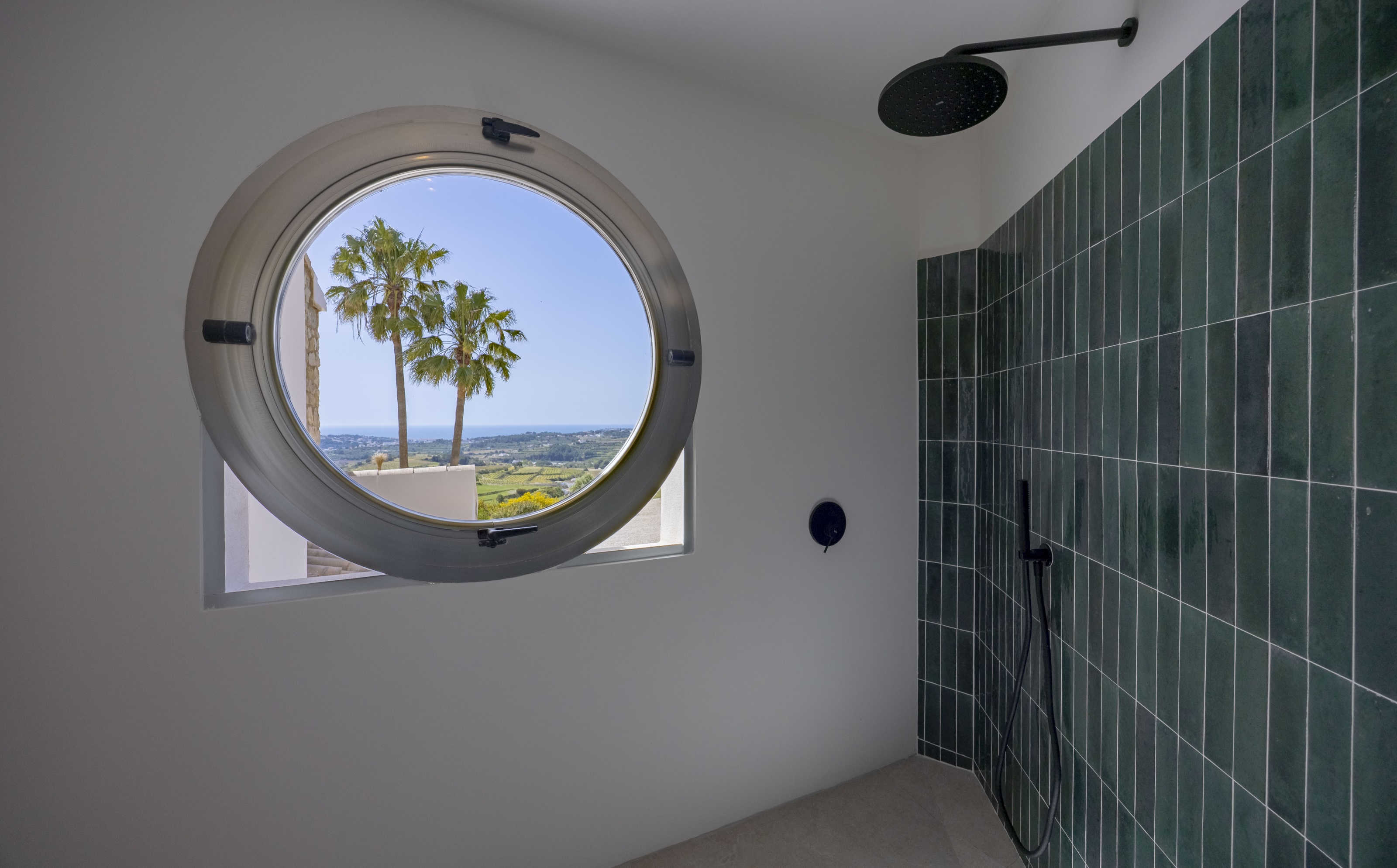 Set on a generous and lush plot, surrounded by mature greenery and open countryside views with subtle glimpses of the sea, the property offers an unparalleled sense of tranquility, privacy, and understated exclusivity.